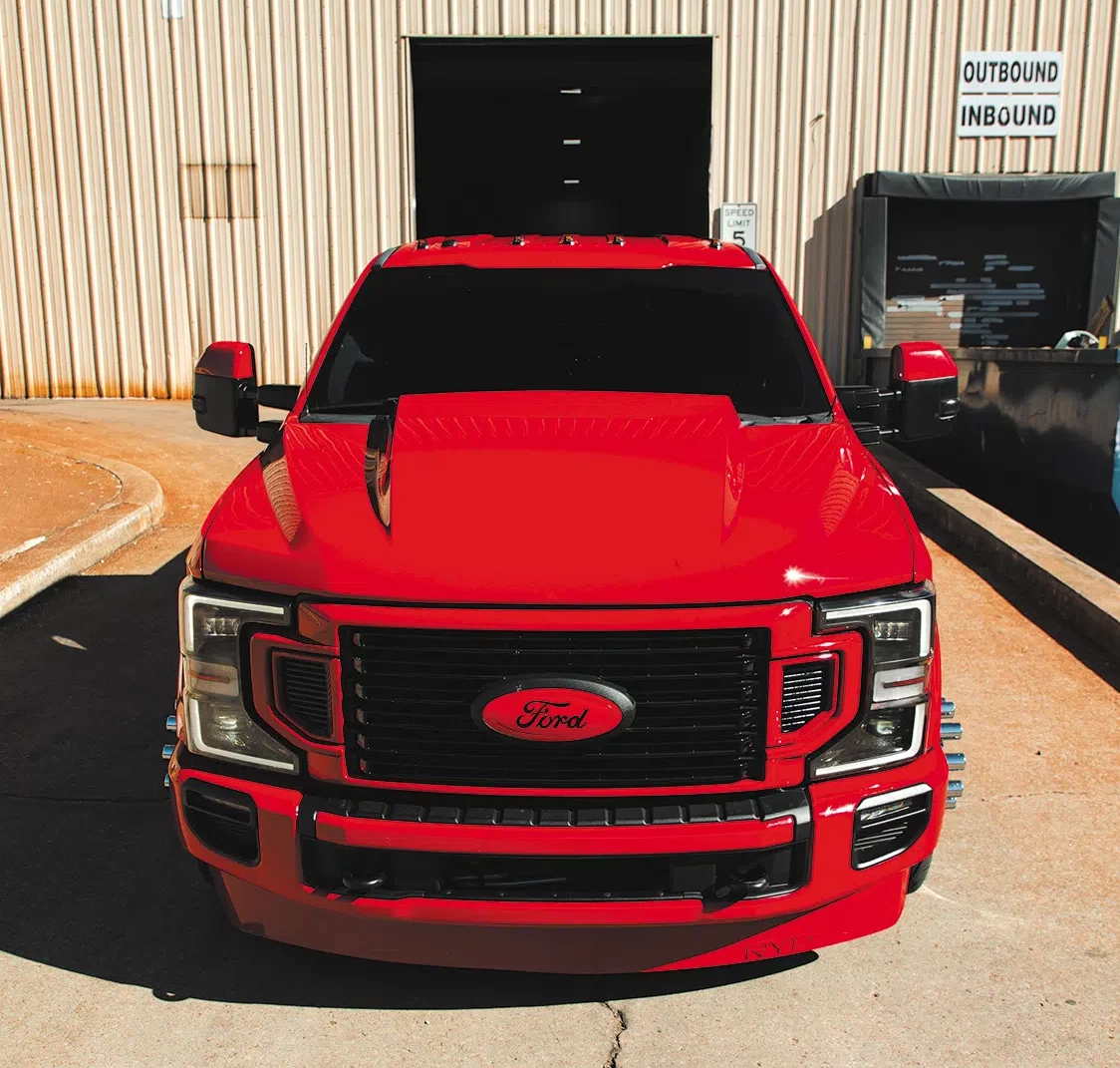 Although the truck has been modified considerably as far as the suspension is concerned, it was important to Randall that the truck remained true to its diesel form. So, under the hood, the dually maintains a 2017 6.7L Power Stroke diesel V-8, but not without a number of components upgrading its power and performance.