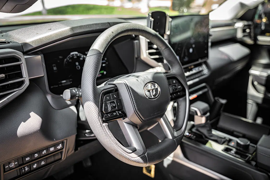 Maintaining its 3.4L twin-turbocharged V-6, Tom’s Sequoia is ready to take on both pavement and dirt, boasting added upgrades from a K&N Performance filters and MagnaFlow exhaust system. Behind the SUV’s V6 is a 10-speed automatic transmission, standard fare for the model and a decent upgrade from the previous model’s 6-speed transmission. This powertrain setup helps give the Sequoia a greatly improved 9,100-pound tow rating, as well as the most potent engine and drivetrain combination in the full-size Toyota truck and SUV lineup to date.