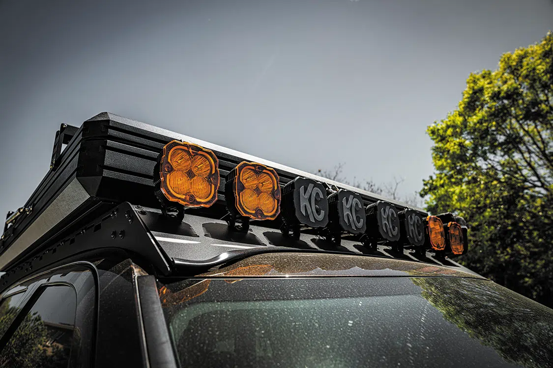 Improved lighting on the Sequoia comes from AlphaRex NOVA-Series LED projector headlights, which are known for their defined long-range lighting pattern, as well as 10 secondary lights from KC HiLiTES, which grace the Toyota’s roof and A-pillars. CBI Offroad Covert bumpers help protect the front and rear of the SUV from body damage, as well as give it a bolder look, especially when paired with a TRD Pro front grille.