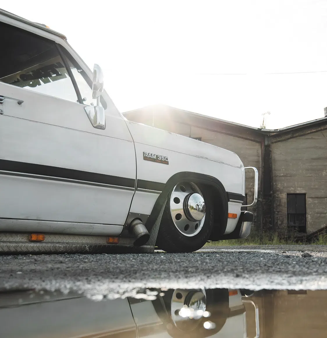 Dropped this low, the Dodge lays frame when fully aired out. An Airlift 3P kit pairs with dual Viair compressors and two 5-gallon air tanks to provide that head-turning bagged look.