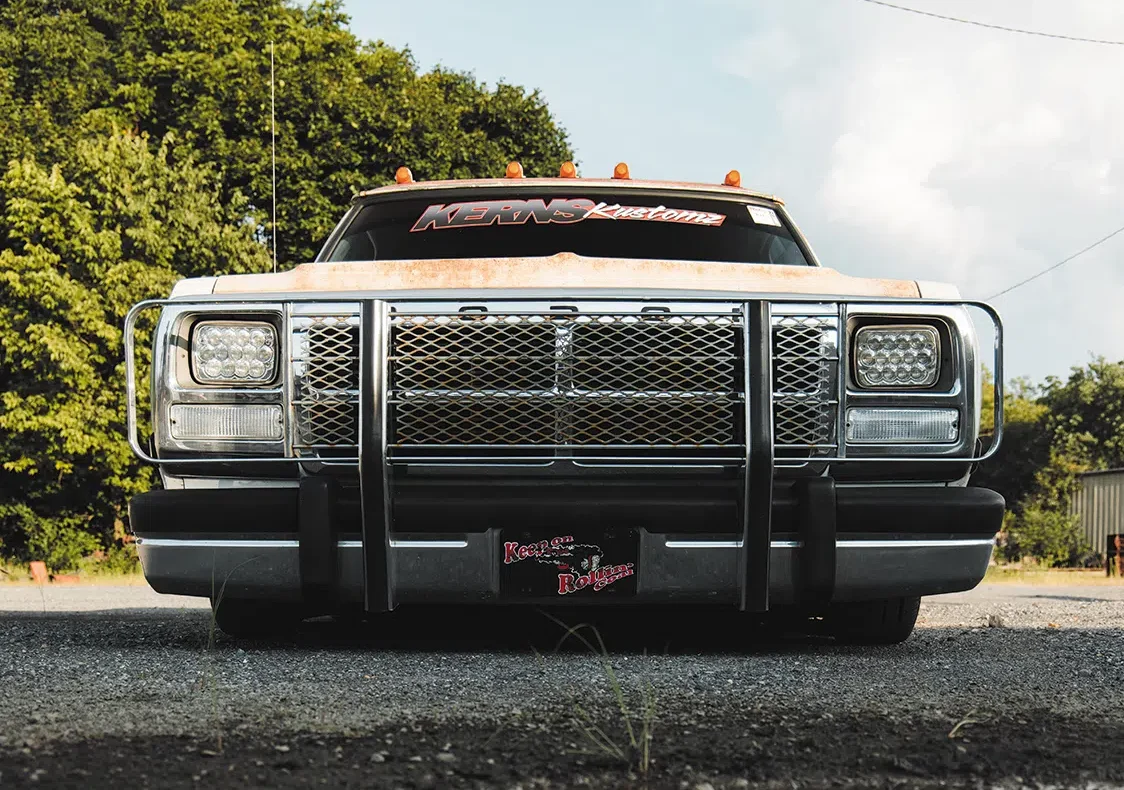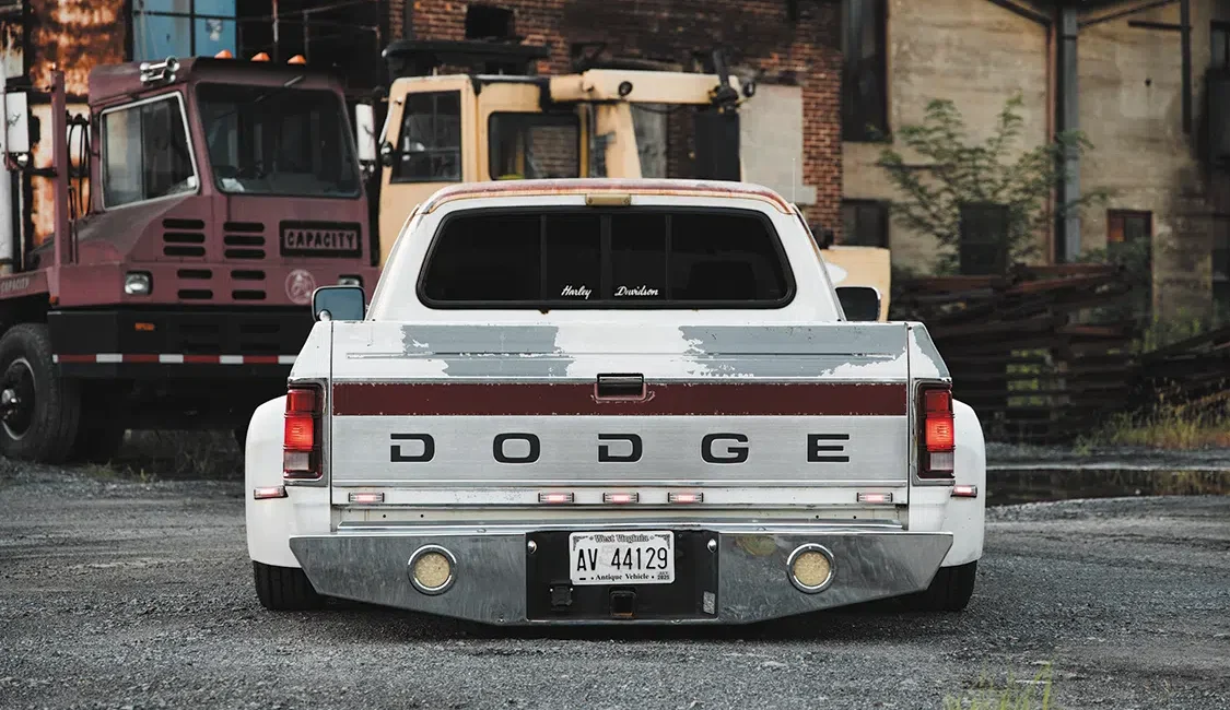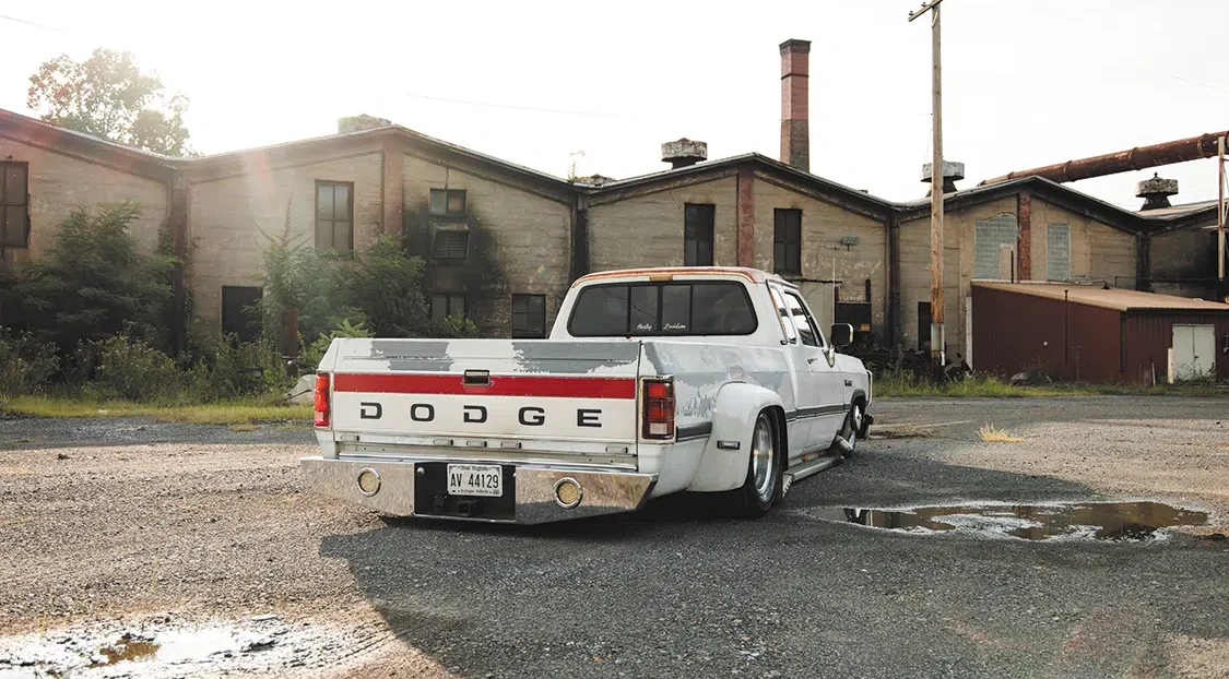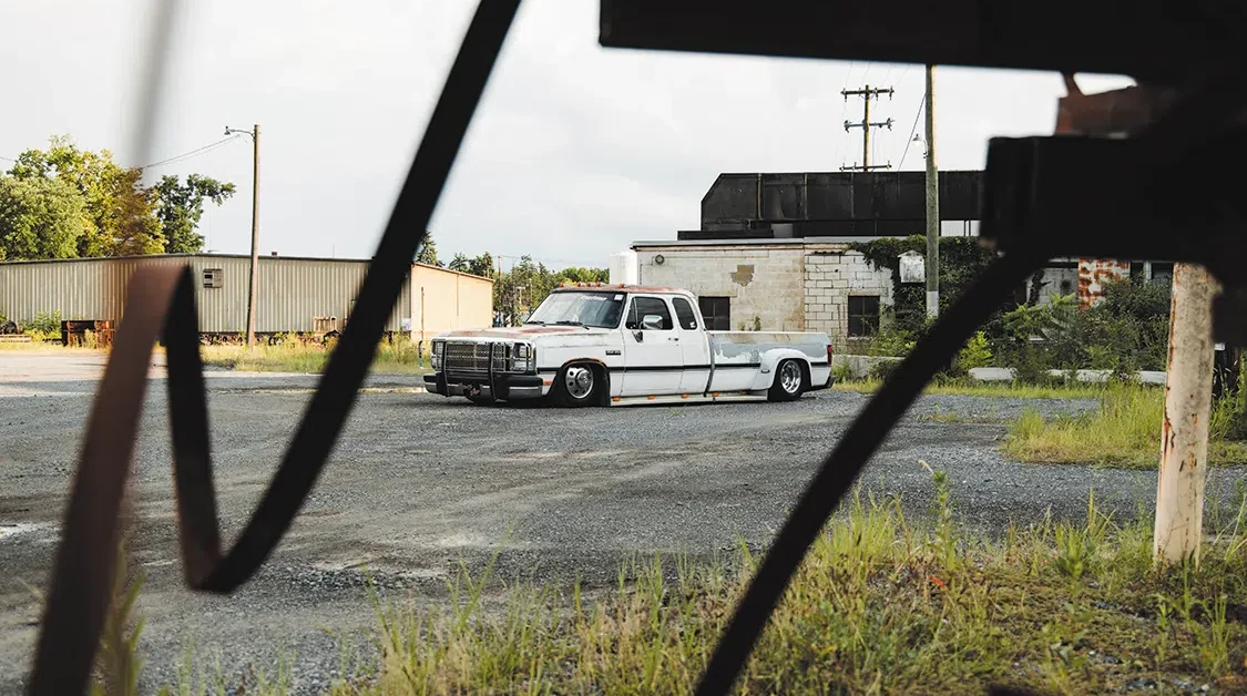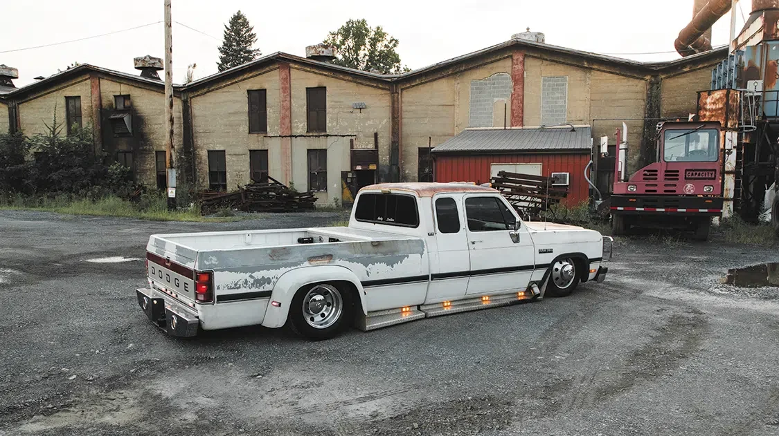 “I’d always been a Dodge guy and hadn’t seen any first gens built, so it only made sense in my mind,” explains Maverick. A lifelong Dodge fan as well, Maverick’s dad was actually the one who bought the truck, about four years ago out of Tennessee. Maverick had offered to help by freshening up the suspension, and before he knew it, he had “accidentally” gone a few steps farther and fabbed up a completely new air ride setup, including custom tubular arms and a 4-link. And that’s just the simple rundown. A little more detail reveals that the frame was also step-notched, a Watts link was incorporated into the rear suspension, and he even fabricated custom steering linkage for extra clearance before connecting them to ‘96 Ram 3500 spindles.