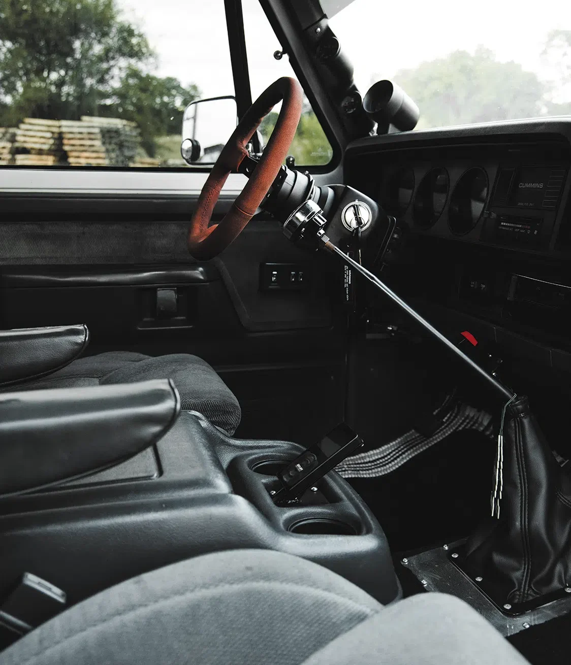To that end, the ‘96 Cummins received a P7100 injector pump, which pushes a major 425cc of fuel. The engine was also treated to 5×0.018 injectors, as well as a set of Industrial Injection S362 and S475 compound turbos to squeeze as much power out of the 12-valve as could reasonably be extracted without the risk of destroying anything. And, of course, Maverick swapped in a ‘96 NV4500 5-speed manual transmission with a South Bend twin-disc clutch – no slushbox for this torquey beast.