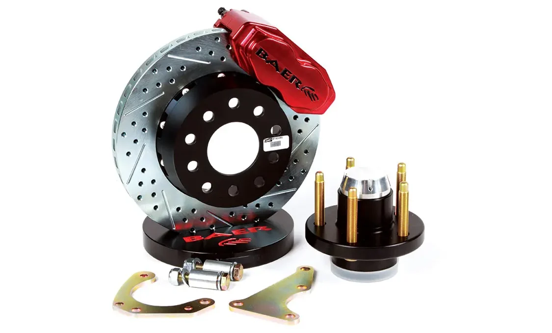Baer is another major player when it comes to brakes. They offer a full-line of high-end rotors, calipers and pads for every application. They offer some really heavy-duty drag racing brakes that are designed to mount directly to the factory spindles, with some modification. The kit for the Mustang, for example, is designed for heavier cars that might also see street use. The Baer system includes aluminum hubs with SKF bearings (available in 4 or 5 lug), and ARP studs.