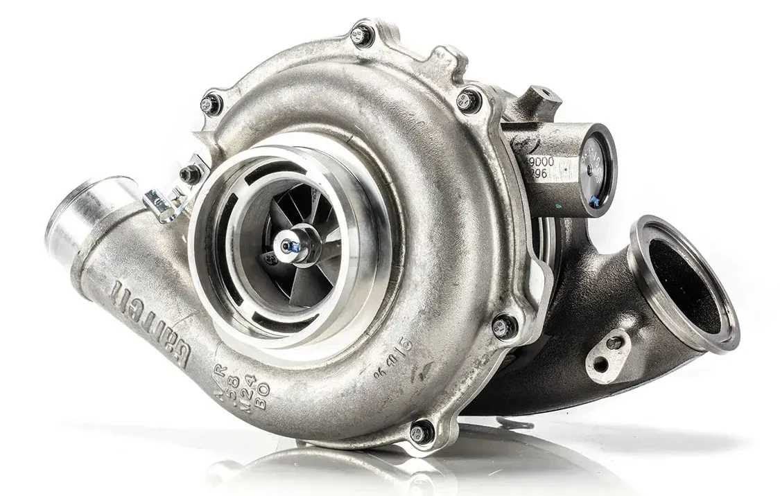 This all new Garrett turbo comes with a install kit and will support up to 500RWHP. It pairs great with stock injectors all the way up to our 175/30 performance units. It provides great spool up and performance without sacrificing driveability. This turbo has the same 10-blade turbine used in the PowerMax turbo line and will have a loud exhaust whistle. This turbo can be used on all years of 6.0L Fords. To utilize on later 2004.5+ model years you will have to leave out one mounting bolt.