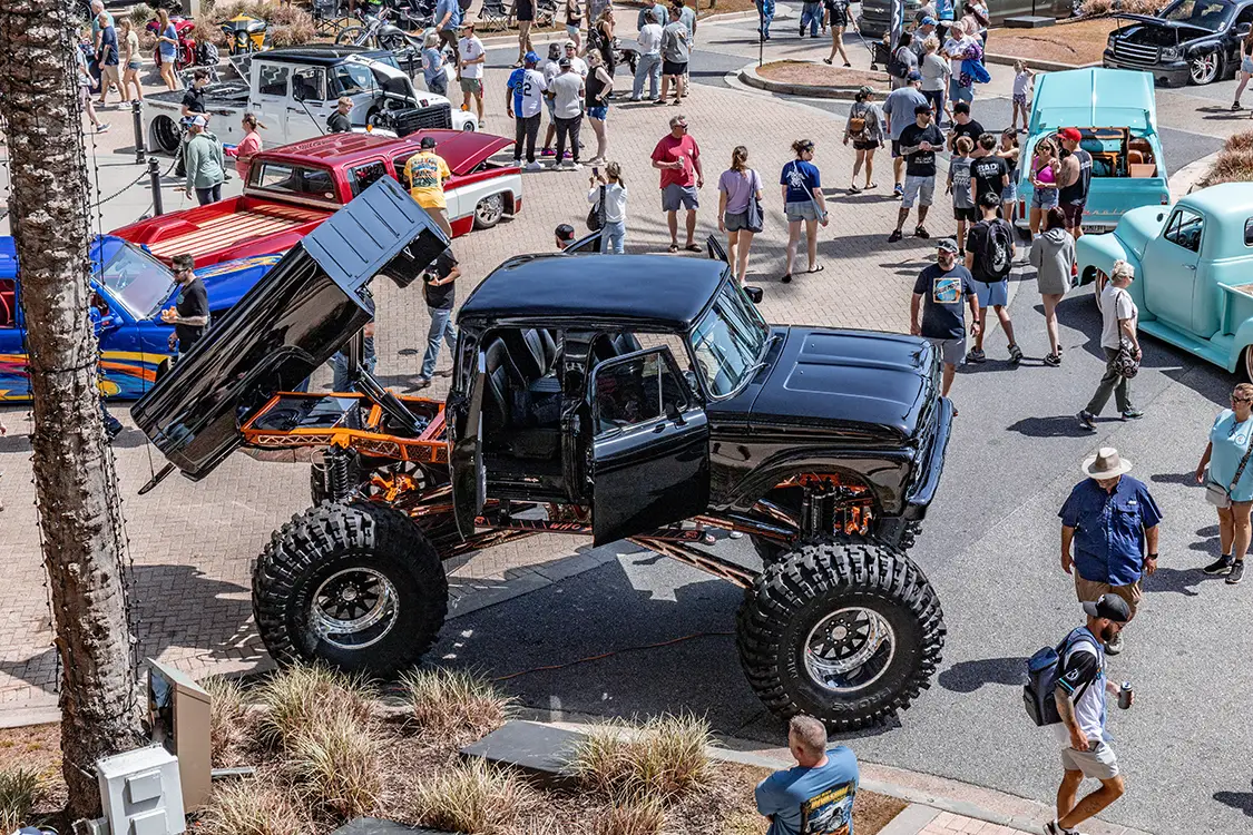 For the automotive enthusiast, this isn’t just another car show. OBI is the event where the deep culture of custom builds meets coastal vibes. From coast to coast, hardcore gearheads, custom kings, and slammed-truck junkies make the pilgrimage to Alabama’s Gulf Coast for a weekend of rubber, rumble, and radical rides. Whether it’s lifted to the clouds or laying frame, there’s no shortage of jaw-dropping builds.