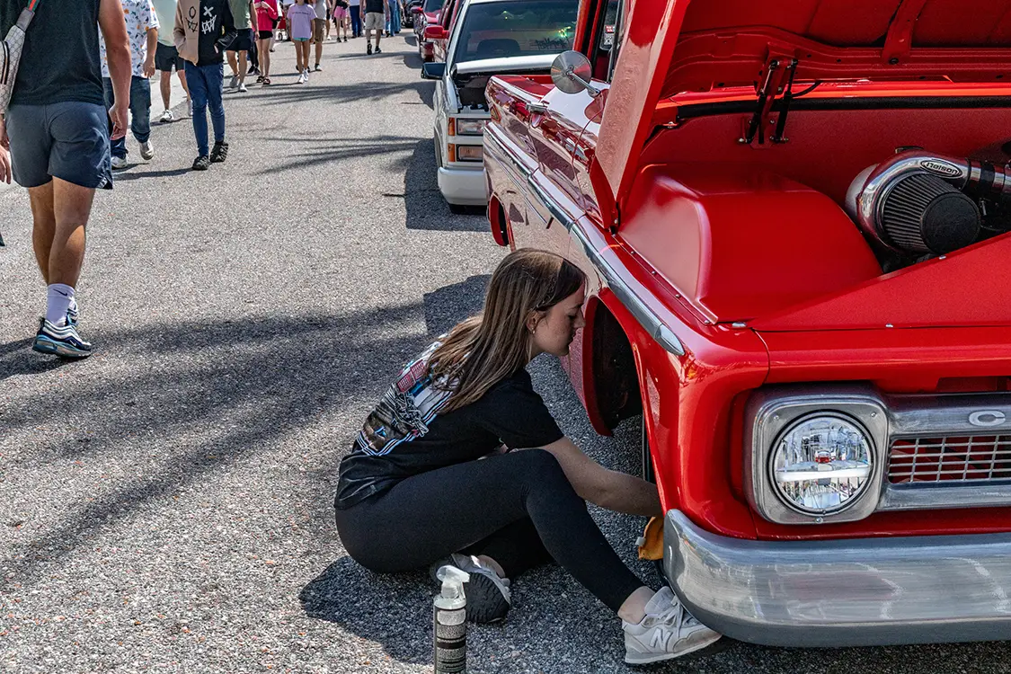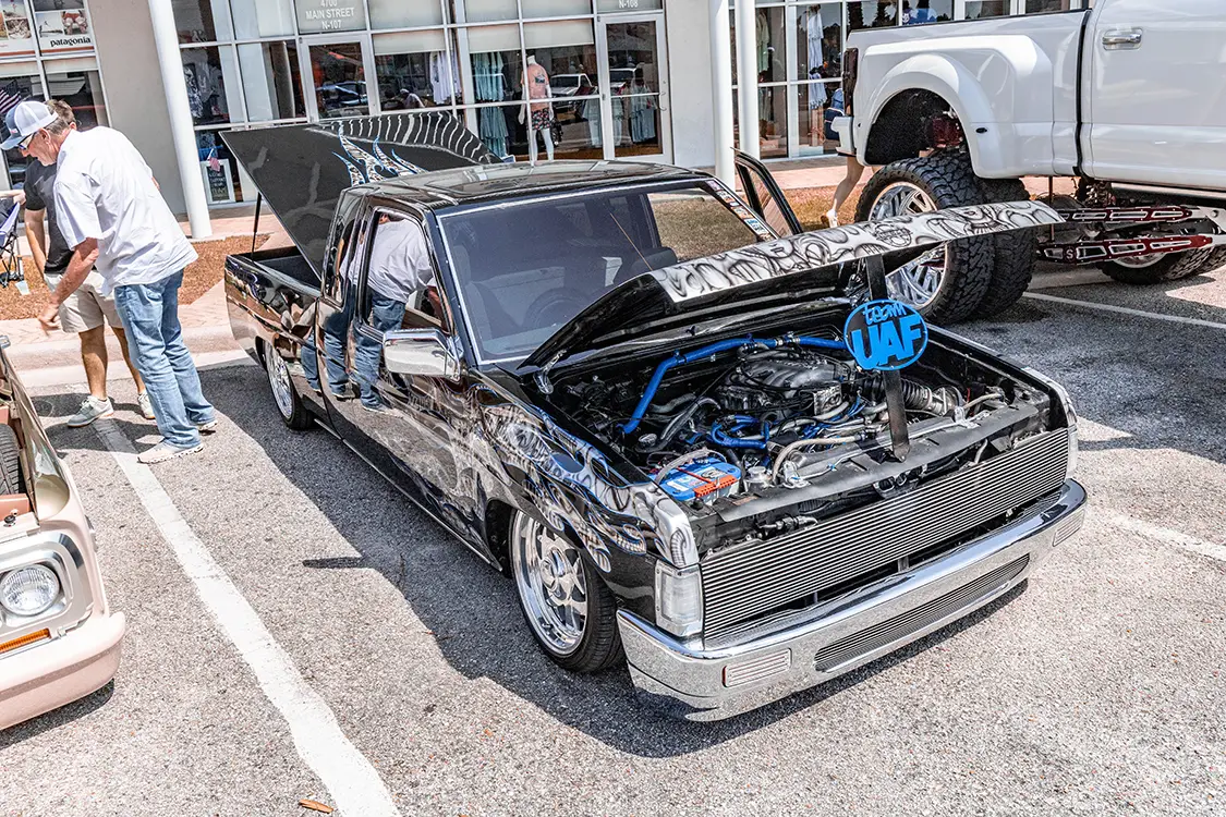 Bagged, bodied, boosted—you name it, it’s here. Massive duallys sitting on polished wheels the size of kiddie pools. Classic trucks with patina just right enough to make you tear up. Imports tucked, slammed, and shaved so clean they glide like ghosts through the plaza. OBI isn’t just about showing off; it’s about celebrating every corner of custom culture, from wild paint to wicked audio setups.