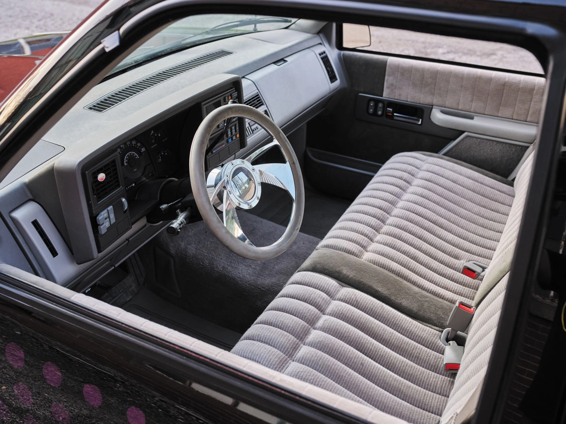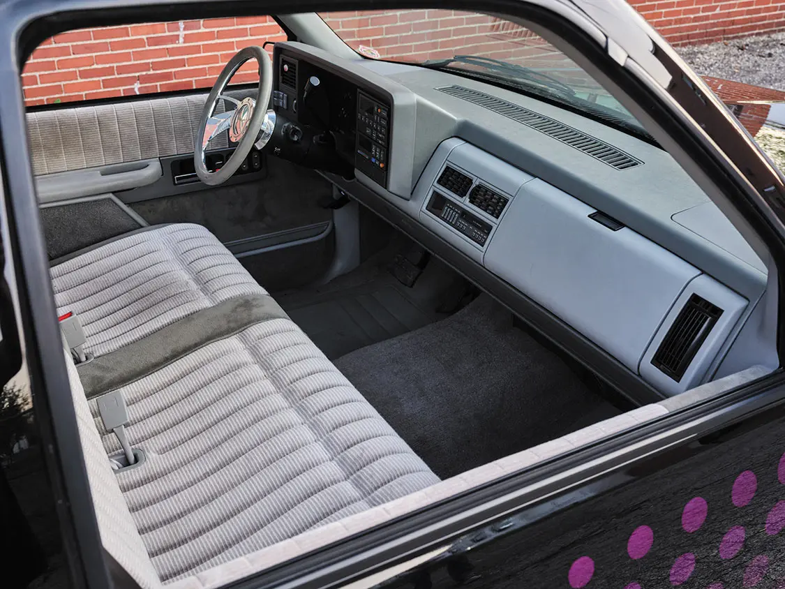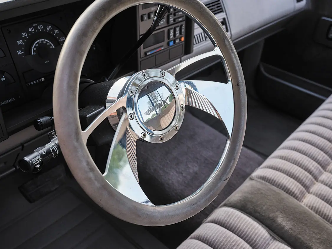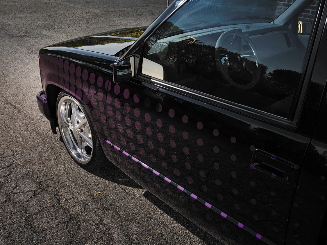 “It was a fairly plain 305 truck, so we quickly disassembled it and added all the Belltech goodies to lower it in a hurry,” David says. “After we were done with that, I remember sitting at my desk drinking a 7 UP when I took notice of the graphics on the can. I thought I could build on the can’s graduating rows of ‘dots’ or bubbles into a new-age scallop-style graphic. The only issue I ran into was how to recreate that dot pattern. Not everybody had a vinyl cutter and could make signs and such back in 1990, so I really had to search for someone who would understand what I was trying to do.”