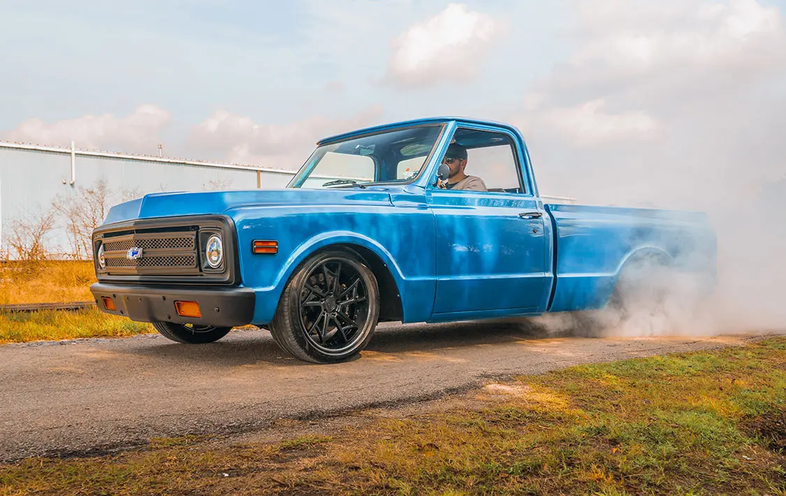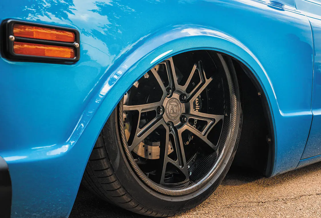 Adding to the C10’s heavily upgraded suspension setup, Wilwood 14-inch vented rotors were added to each corner to promote much more controlled stopping power when the truck is in motion. With a healthy manual braking system in place, Nathen began shopping around for the perfect set of wheels to bolt onto the truck. We all know that wheels can make or break the overall look of a vehicle, especially on a 52-year-old truck. Obviously, he understood the importance of the selection, which is why he went all out and chose a set of Avant Garde Luxury wheels. The staggered set of 20×8.5 front and 22×10 AGL24 series wheels feature a carbon fiber barrel with a forged aluminum spoke design that has been coated in a matte black finish. These wheels embody both performance and luxury, as do the Pirelli P Zero PZ4 tires that have been chosen to cover them.