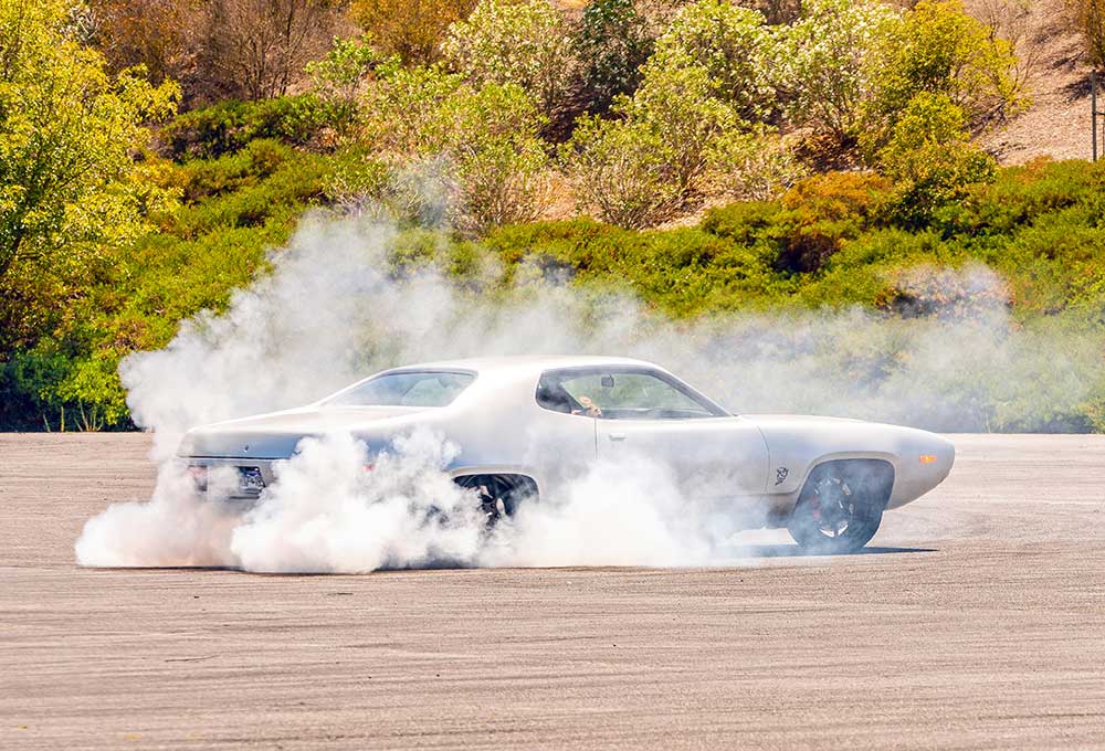 Chassis: Plymouth B-Body with US Car Tool subframe connectors, Wilwood Drop Spindles, QA1 front control arms and Custom mounted Tesla Rear Subframe. custom mounted EPAS Performance quick ratio electric rack and pinion
