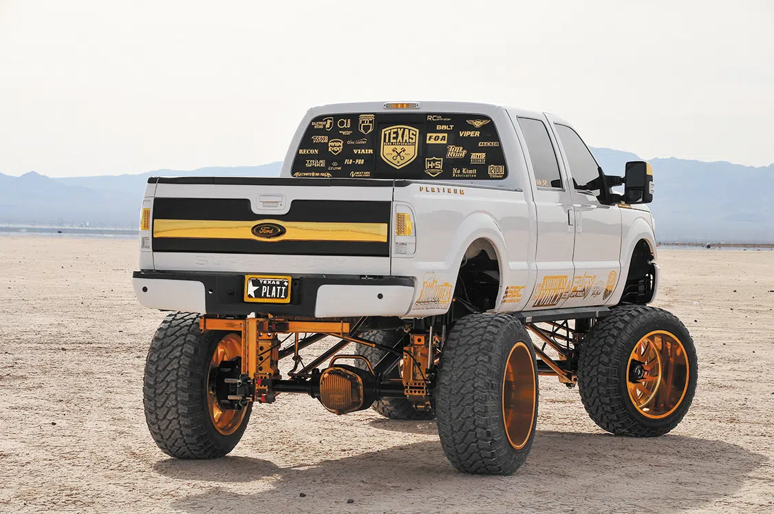 Hunter and Texas Born Performance, my father Steve, John Scott and Scott Solar, Fury Off Road Tire, American Force Wheels, Ultimate Air Ride, Viair, Bolt Lock, Plain An Simple, Mag Hytec, 12-Volt Villans, Bulletproof Hitches, KD Design, Kicker Audio, Top Koat, Hornblasters, Lock ‘Er Down, SSBC Brakes, True Spike Lug Nuts, Alea Leather, No Limit Fab, Ride Controller, Avery Dennison
