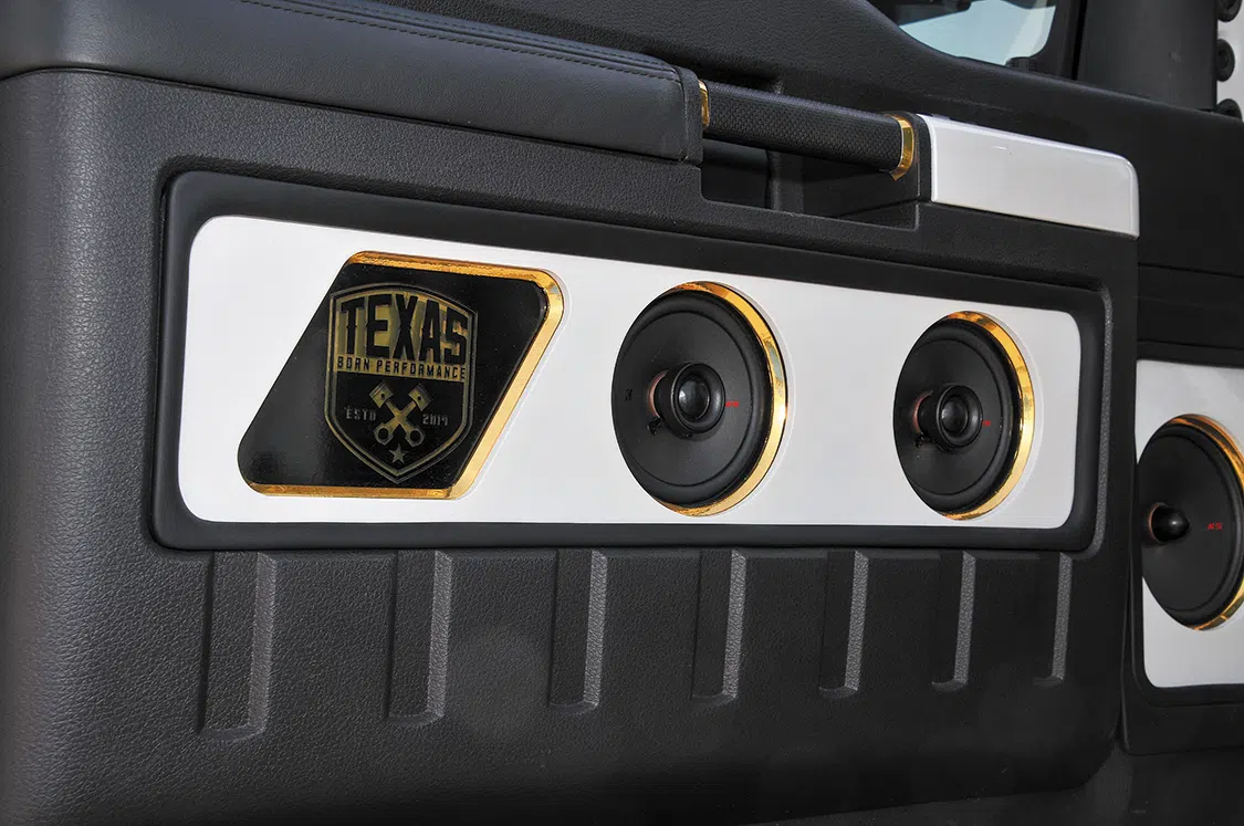 The final step was inside the cabin, as Texas Born Performance removed the seats and wrapped them in high-quality Alea Leather diamond-stitched seats and center console. A custom star light ceiling was added with a total of 150 fiber optic lights to make it resemble a Rolls Royce. While the seats were being completed, Next Gen Audi was mocking up door panels that incorporated speakers in each door. The Kicker stereo system was next to be installed with two Kicker 5.25-inch and a Kicker 6.5-inch in each door. In each fender well, a Kicker tower speaker was mounted to give it better sound. To lead the stereo, a custom retro iPad dash kit was installed in the dashboard.