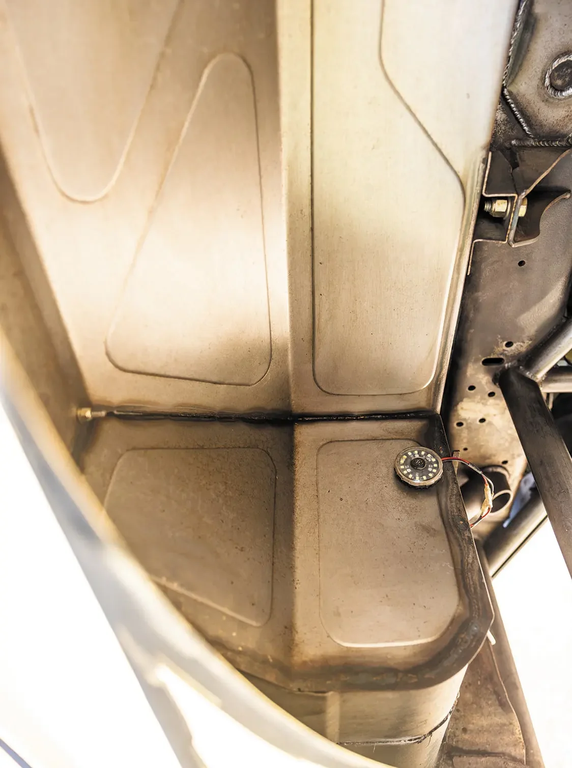 Looking for some decent power to push this beast forth, Jerry went against the purist grain and outfitted the truck with a 2008 GM 6.2L V-8 he salvaged from a junkyard. To that, he added custom 1 7/8-inch headers and a custom 3-inch exhaust system with side dumps, as well as a Speartech harness before handing it over to ZMOD Performance for the perfect tune. Other than that, the engine is as it came from the factory, fed by a Fuel Safe fuel cell behind the truck’s cab.