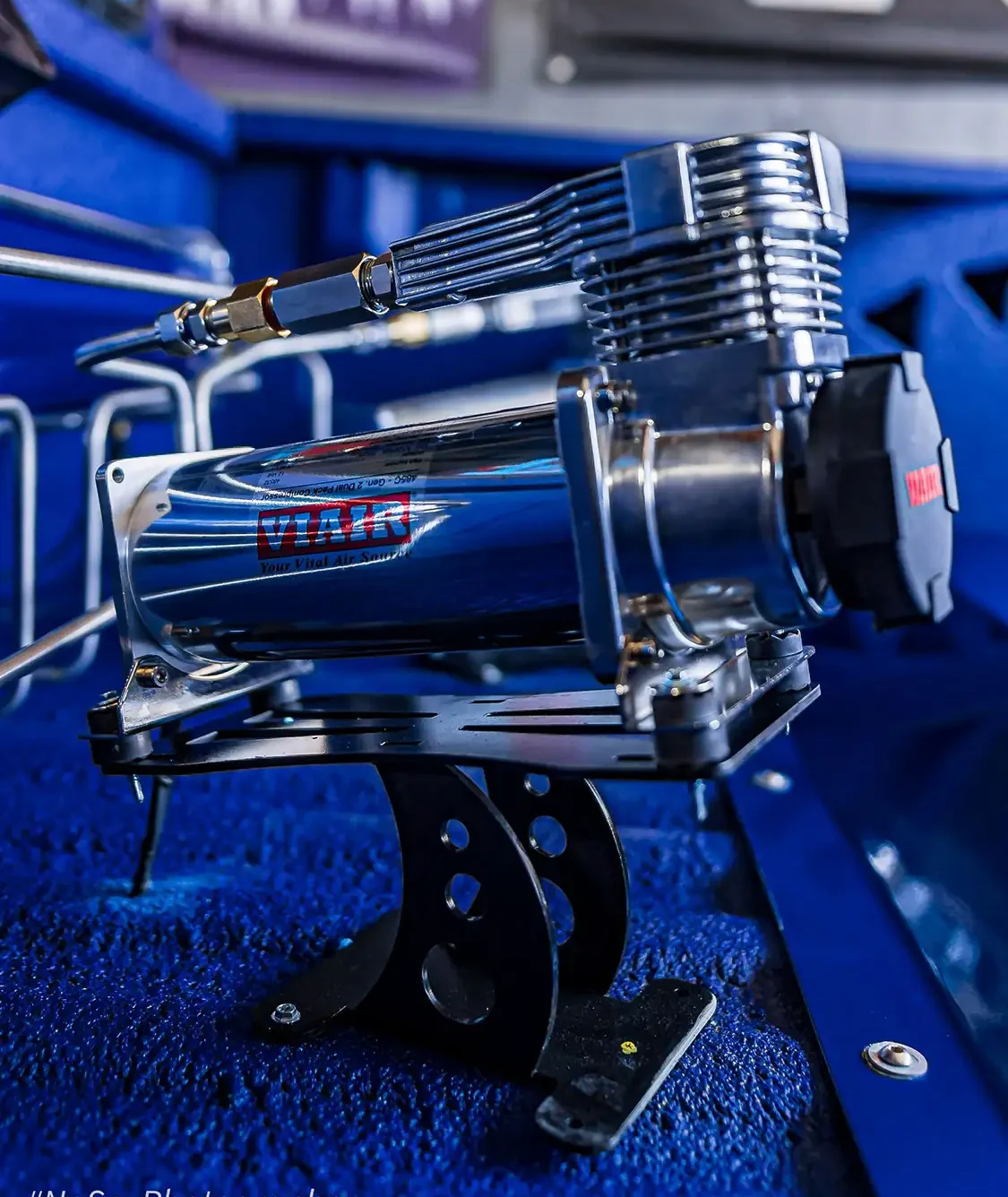 Aiming for superior handling, ride quality, and the stance Larry was after, Uneekbilt utilized its own in-house front suspension and rear 4-link kits, along with DJM Dream Beams for the truck, pairing everything with Airmaxxx bags and components on all four corners. Custom bag mounts on the I-beams allows the truck’s C-notched frame to lay even lower while providing it with adequate clearance for regular drivability. Additional components, including a Square Tank air tank, two Viair compressors and an Accuair air management system, tie everything together for unfettered performance at any level.