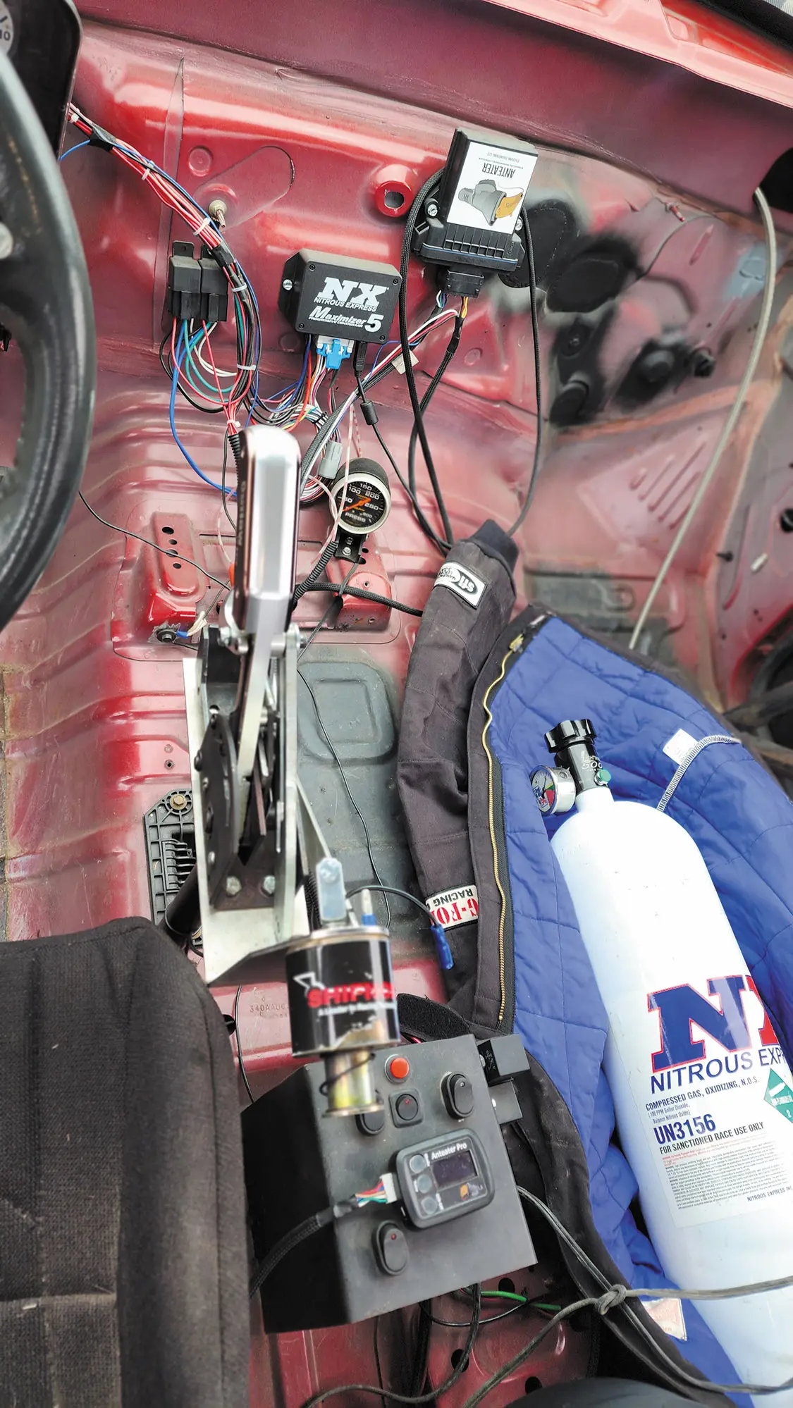 Adding fiberglass doors and bedsides has brought this truck’s weight down from stock to 5,150 lbs — and that’s with me in it! When I ran it on the dyno at Weekend On The Edge it surprised me that it could do 1,495 HP on a single small 88 jet.”