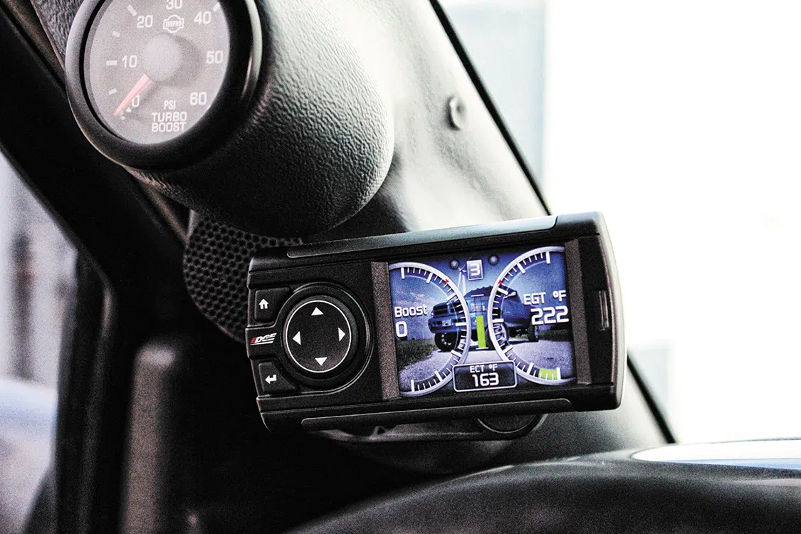 Tuning comes by way of an Edge Competition Juice with Attitude CS2, which, with its infamous power level 7, allows full fueling of the VP44 up to 3,600 rpm. While Michael uses the CS2 to monitor EGT, two Isspro gauges mounted along the A-pillar keep him apprised of boost pressure and fuel pressure.