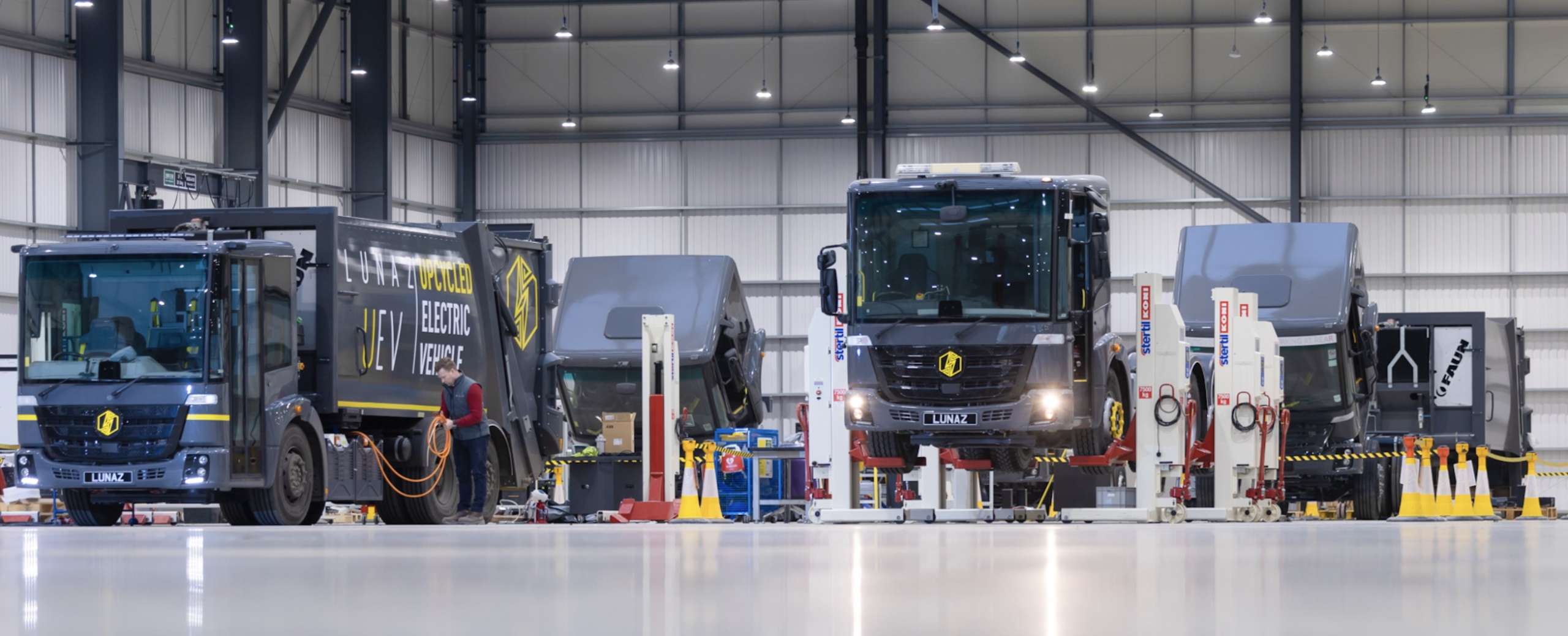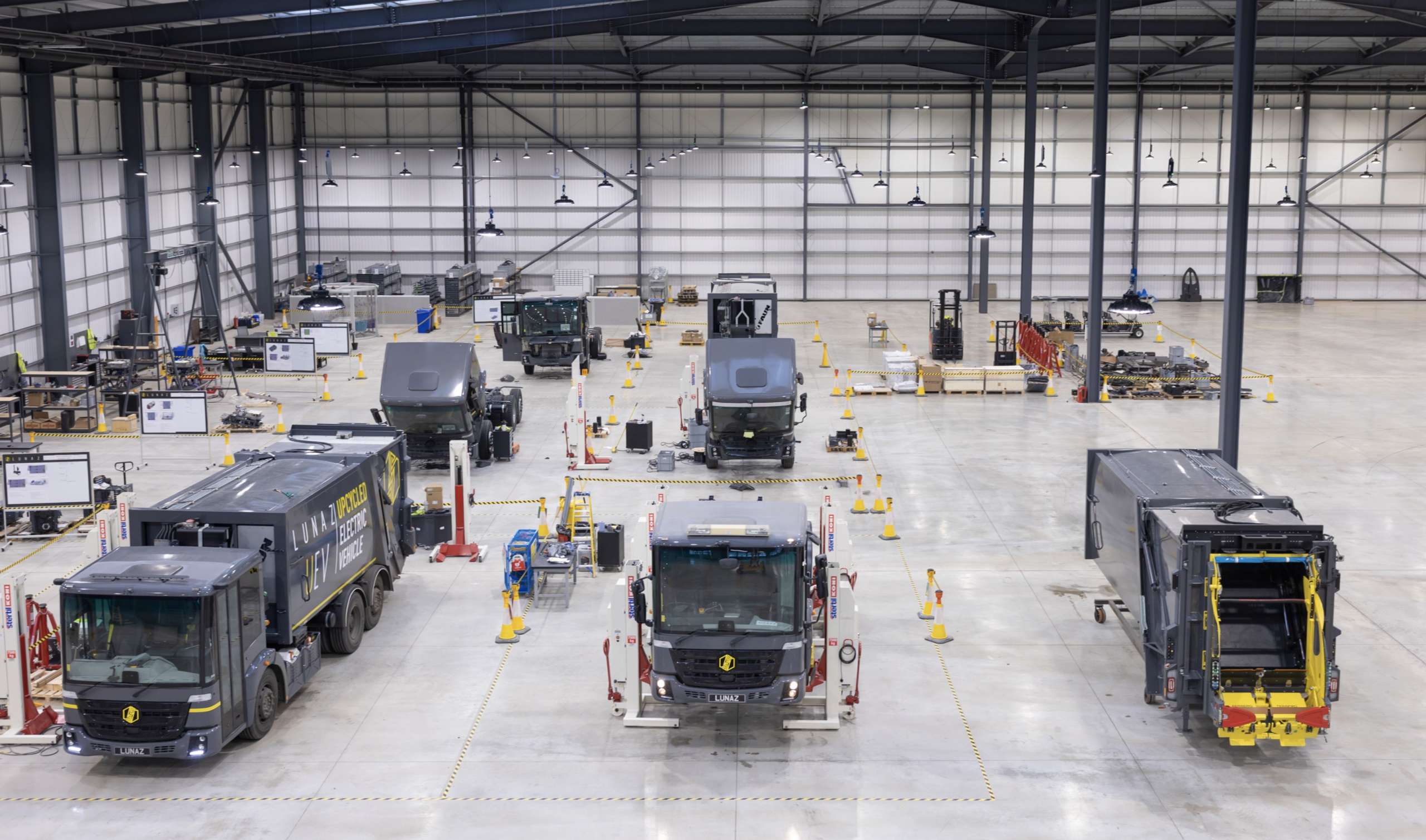 The company has just moved into a second 140,000 sq ft warehouse next door. This is where Lunaz is giving the same treatment to a fleet of six-year-old 27-tonne Mercedes thrash collecting trucks or ‘bin lorries’. Lorenz continued: “We’re among the UK’s fastest-growing companies; we’ve raised thirty million pounds in investment and have a unicorn growth trajectory.
