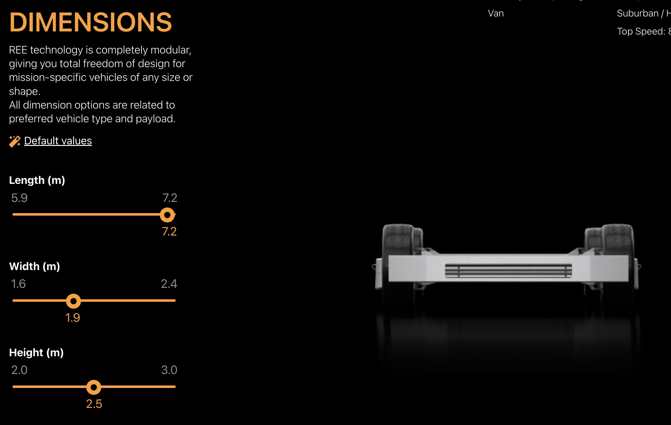 Fully configurable, you can even opt for four wheel steering, and select the ideal wheelbase of track width: