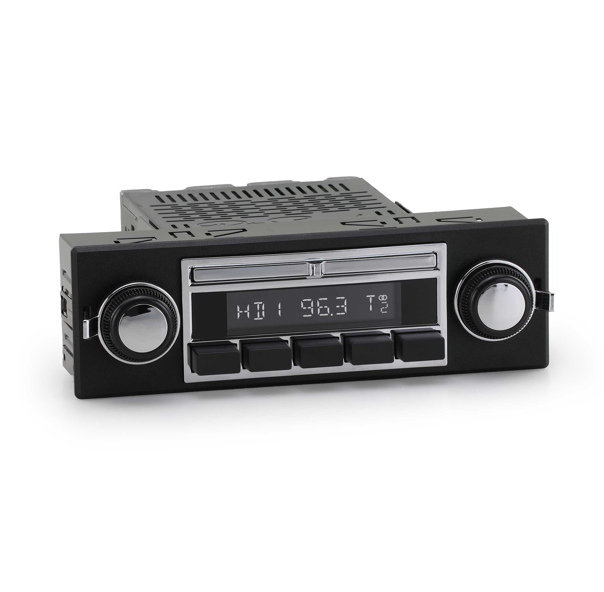 The Liberty radio is especially well-suited for GM and Ford vehicles from the 1960s and 1970s, including models like the Chevrolet Chevelle, C10 pickup, Camaro, and Ford Mustang or F-100. Many of these vehicles were modified with DIN openings during past audio upgrades, and RetroSounds’ Liberty now offers a clean, factory-style fit with modern convenience.