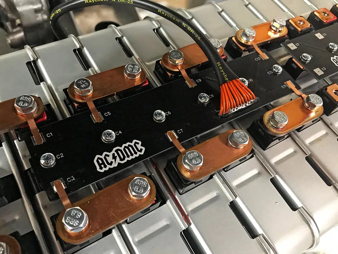 Jacob opted for the Zeva EVMS V-3 battery management system because of its compact satellite modules. Given that the pack is divided into three groups across the vehicle, this choice was a perfect fit. To connect the BMS satellite modules to the Leaf battery modules, he designed a custom printed circuit board (PCB). This approach significantly streamlined the BMS wiring.