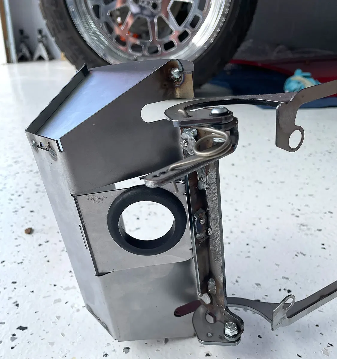 09. After Dack fit the frame in the taillight housing and mounted it with a few rivets, he checked the function by opening and closing it making sure there was no resistance.