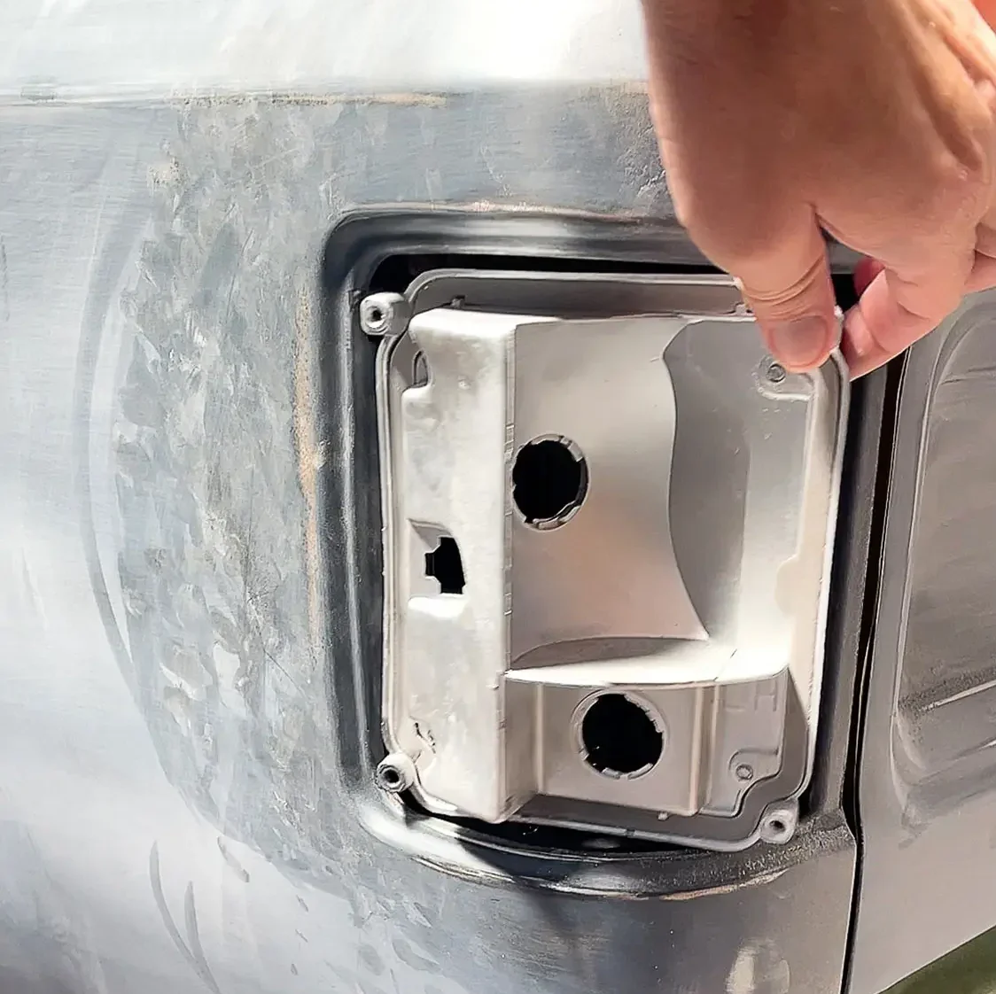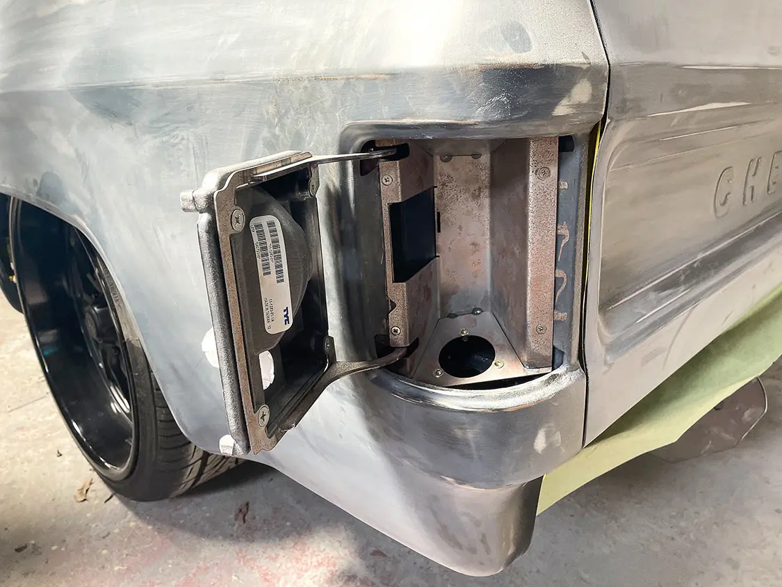 07. Before Shane Murphy at Street Dreams laid color on the truck, he will make sure the new LS Fabrication taillight fuel filter fits correctly and opens properly.