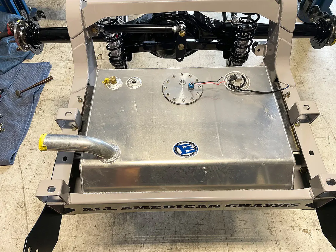 01. When we left off, the fuel tank from Boyd welding was installed on the new All American Chassis, and we were ready to start plumbing the gas lines.