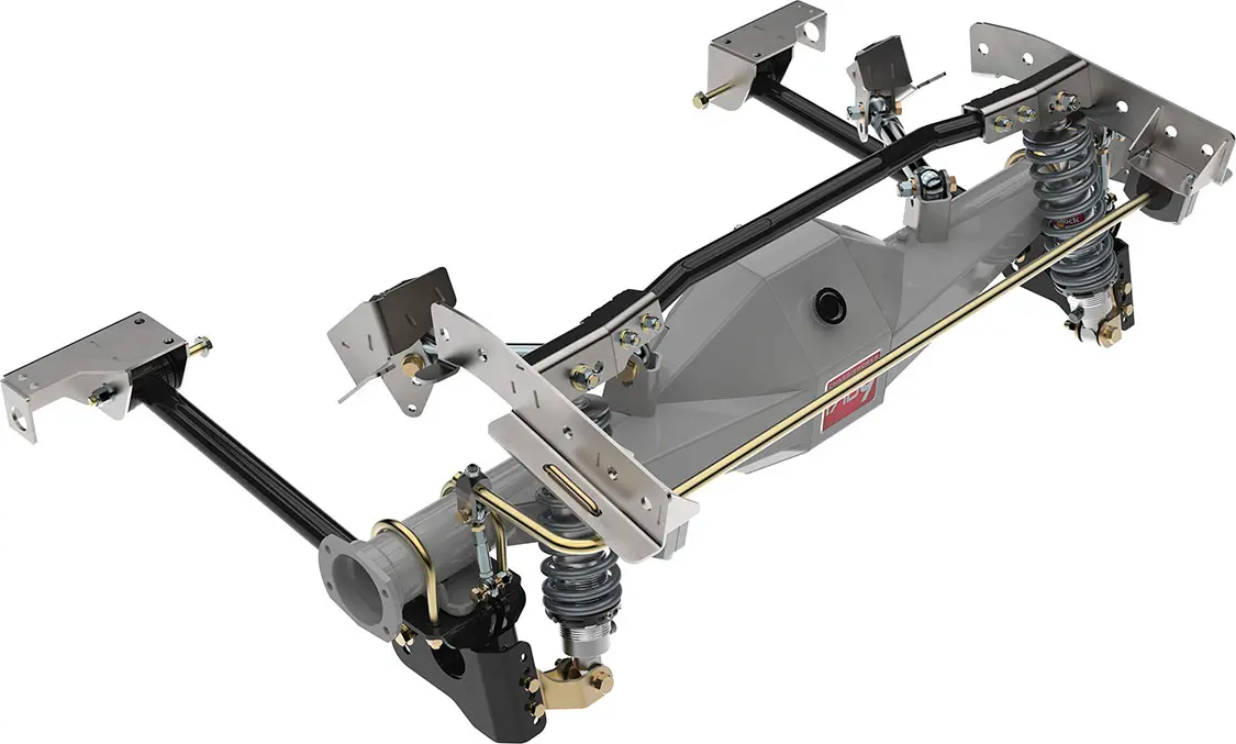 With adjustable suspension geometry and the option to choose between coil-over or air-spring shocks, this suspension upgrade offers enhanced control and stability on the road. The triangulated 4-link design offers improved traction and handling, making it an excellent choice for drivers looking to enhance their driving experience. The suspension can also be used with either a leaf-spring rearend housing or a fabricated Ford 9” housing from Total Control Products.