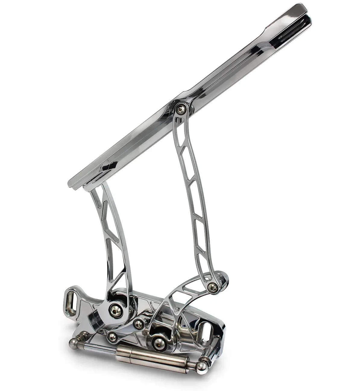 Eddie Motorsports newly designed Kinetic hood hinge features form and function in a CNC precision machined T-6061 billet hinge. The new Kinetic hinge is a custom alternative to the inferior O.E. stamped steel hinge. Mounting points are designed with larger mounting areas machined in for more adjustment over stock hinges to get a perfect hood gap. Sealed bearing and stainless hardware ensure long lasting performance and smooth operation. CNC machined windows add to the distinctive look of the Kinetic hinge. Available for these popular applications: 67-69 Camaro / Firebird, 64-67 Chevelle. 63-67 Impala and 64-67 GTO / Cutlass. Can be customized in any one of our available finishes from raw machined or any one of our Fusioncoat colors. Sold as a pair with vehicle specific gas charged struts and stainless mounting hardware.