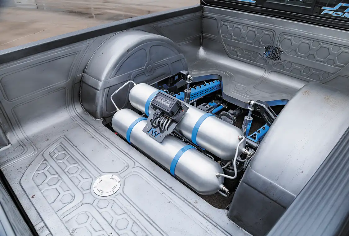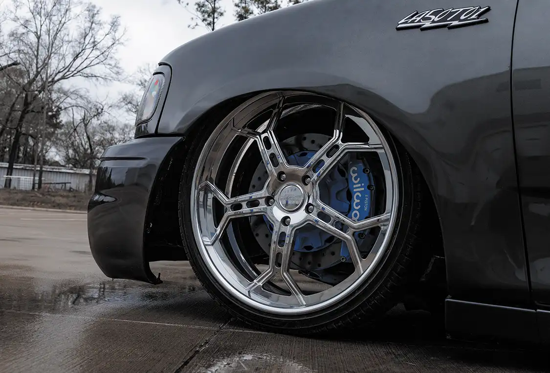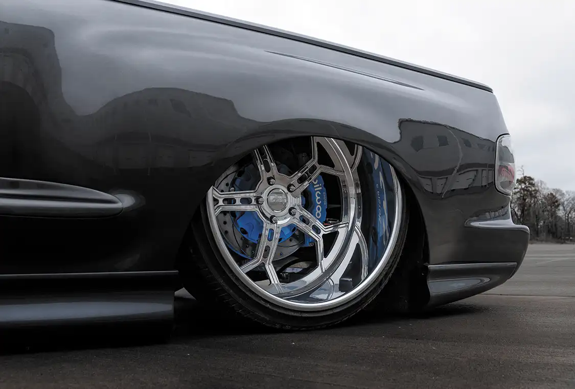 With its air ride suspension and unique modifications, 50TO1 is a true showstopper. To ensure it stands out even further at events, Ruben partnered with JTX Forged to design a one-of-a-kind set of wheels—the striking ‘LOKS’ that measure 24×9 in the front and 26×12 at the back. Complementing this big upgrade is a robust Wilwood brake kit.