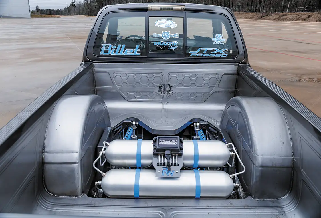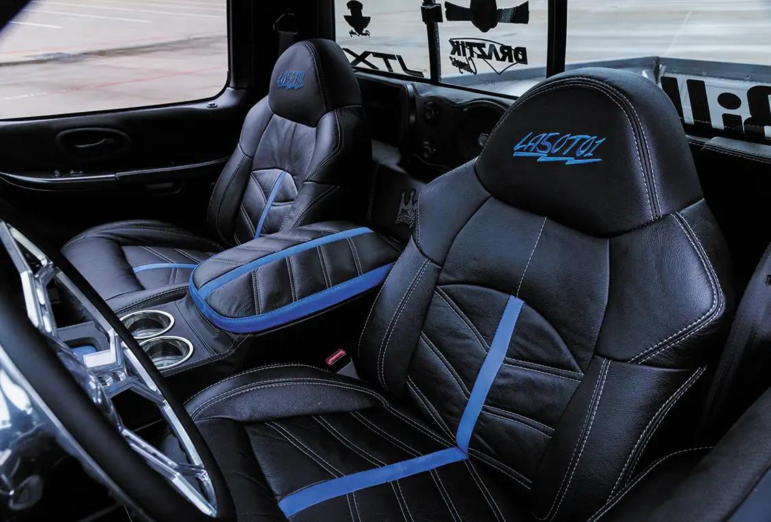 The allure of 50TO1 doesn’t stop with its striking exterior. This truck is equipped with a custom air ride suspension crafted by Precision WRX in Houston. With custom control arms and a specialized 4-link system, the stance of this truck is nothing short of perfection. “I support all my local shops”, Ruben says. “Without them, I wouldn’t be able to bring my visions to life.”