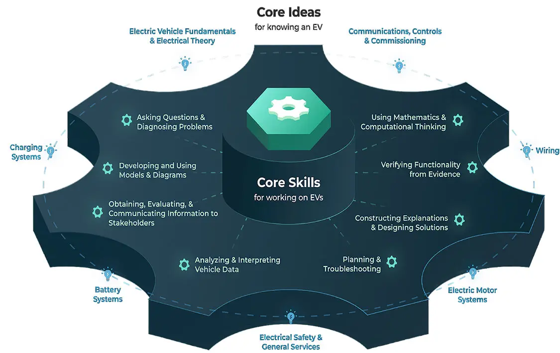 The course will focus on the following core ideas and skills that are some of the building blocks of the certified EV technician framework: