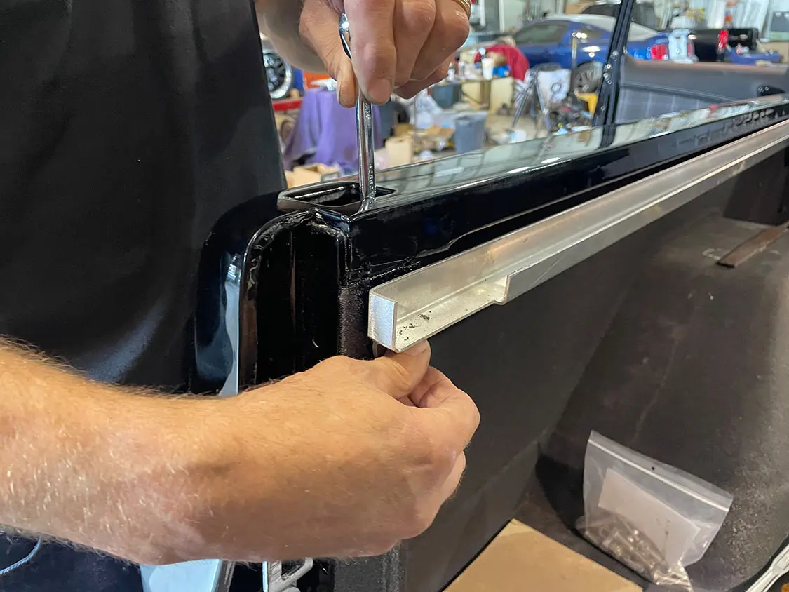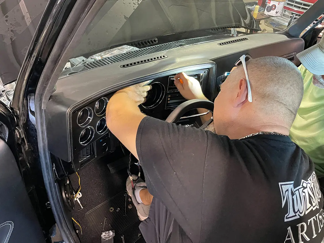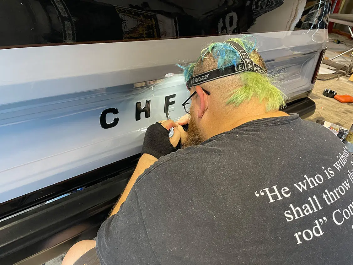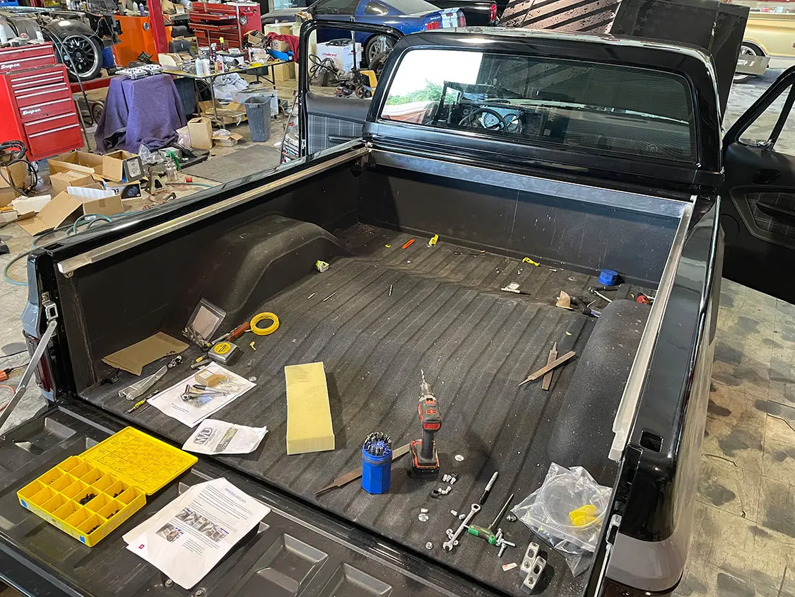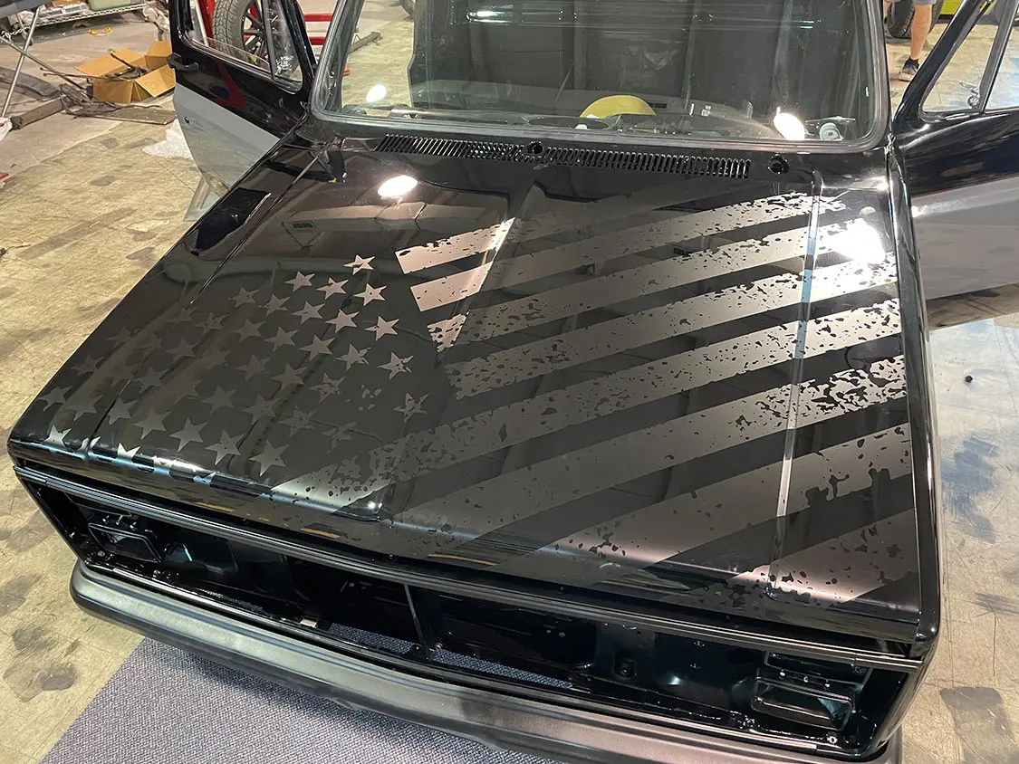 The first item to tackle is the bed cover and vehicle graphics. The truck’s exterior boasted additional vinyl graphics, including a distorted American flag on the hood. This symbol represented resilience, echoing the strength of the veterans that Mission 22 strives to support. The truck bed received a special touch, a Pro’s Pick aluminum bed cover wrapped in black gloss vinyl, adorned with the names of sponsors and contributors. This gesture honored the support received throughout the project, turning Sergeant Square into a rolling canvas of gratitude.