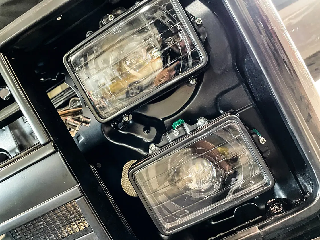 Under the hood, Ididit Steering and Borgeson USA components ensured smooth handling, emphasizing safety alongside performance. New headers from Hedman Headers were added, promising enhanced engine efficiency and a resonant, powerful sound. We also took the time to bolt in our new headlights from Dapper Lighting, and wow, they are nice!