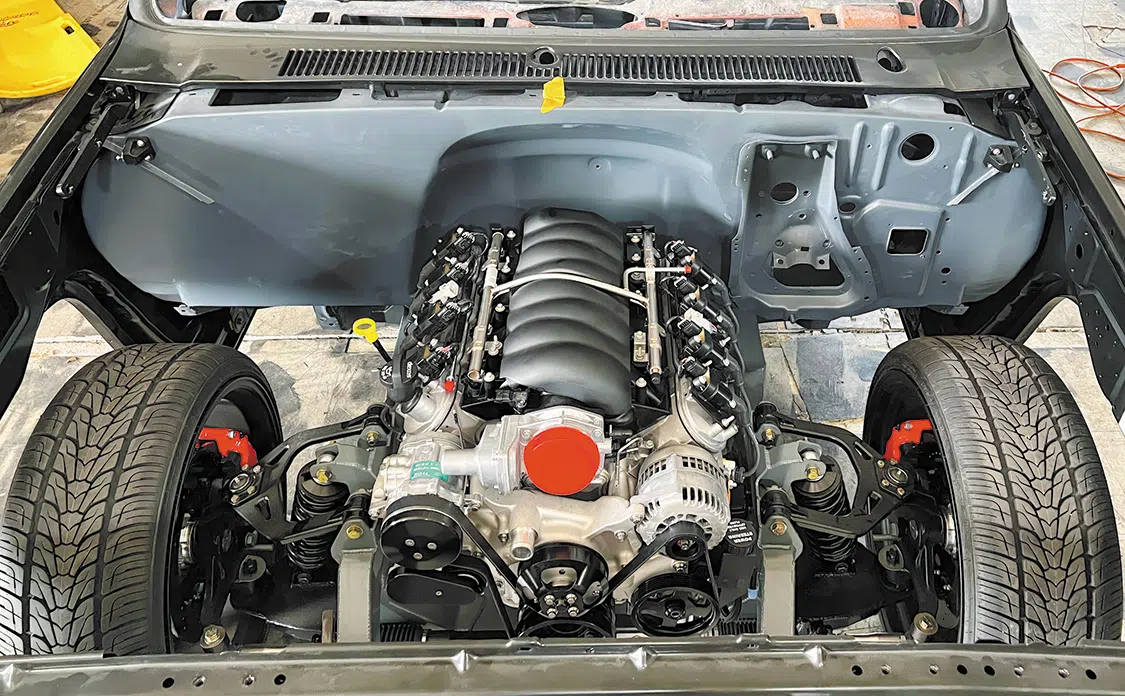 Exciting Engine Upgrade: The new 6.2-liter Chevy Connect and cruise engine and transmission package from Scoggin Dickey Motorsports adds power and performance to the Sergeant Square build.
