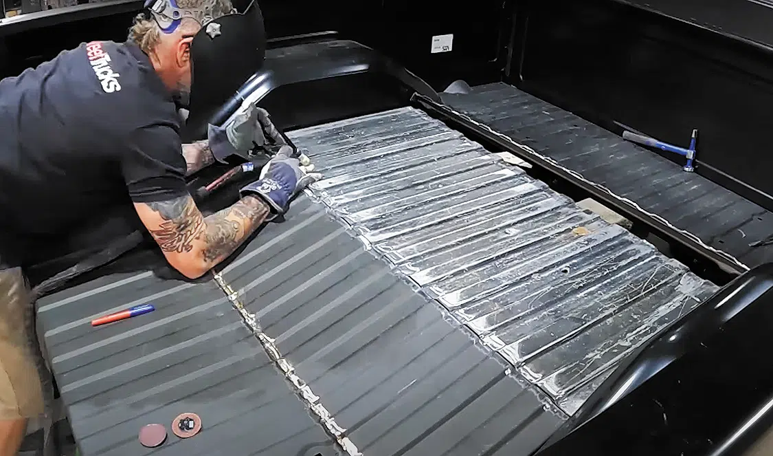 With the long, tedious task of welding all this sheetmetal complete, we can see the final look of the bed floor. It’s sleek and low, just like we hoped.