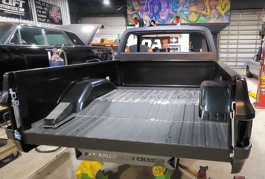 Now that the bed is fully welded and coated, it’s time to put it back on the All American chassis.