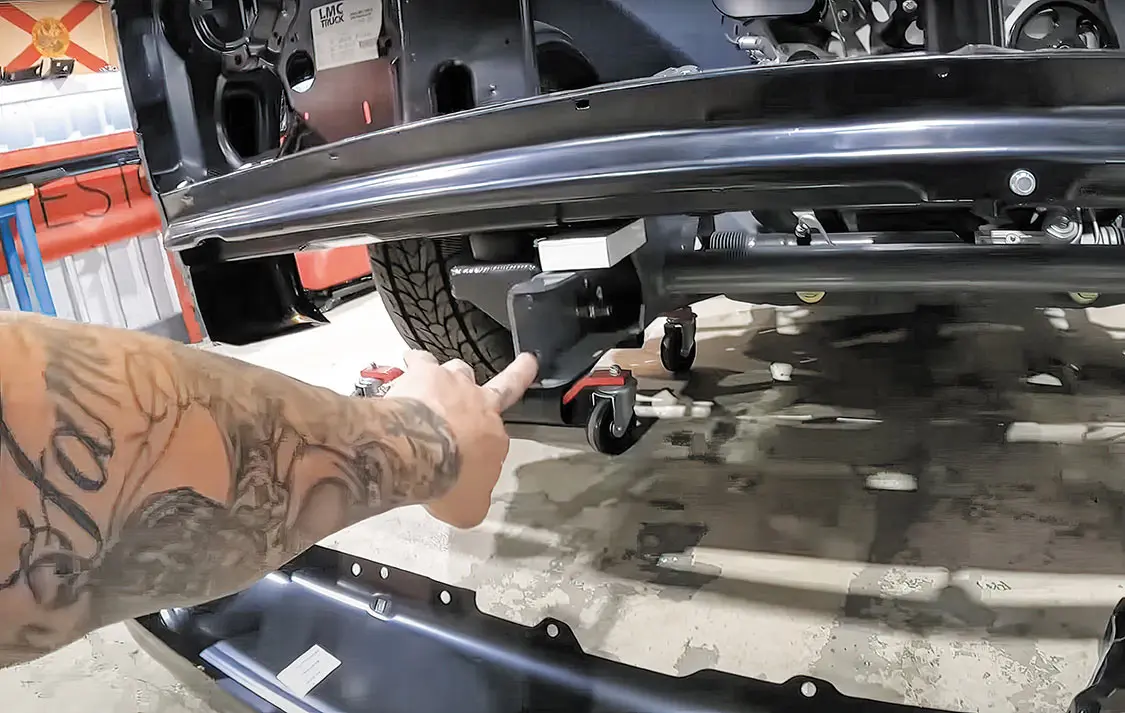 Taking their fabrication skills to the next level, the Salvage to Savage team embarked on creating custom bumper mounts for the stock squarebody bumpers. By “frenching” the front and rear bumpers, they achieved a sleeker look that enhances the truck’s overall profile. This thoughtful modification not only adds aesthetic appeal, but it also showcases the team’s commitment to making Sergeant Square a standout vehicle.