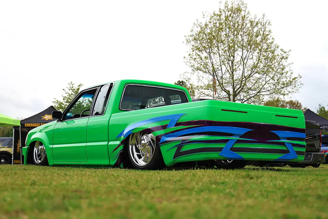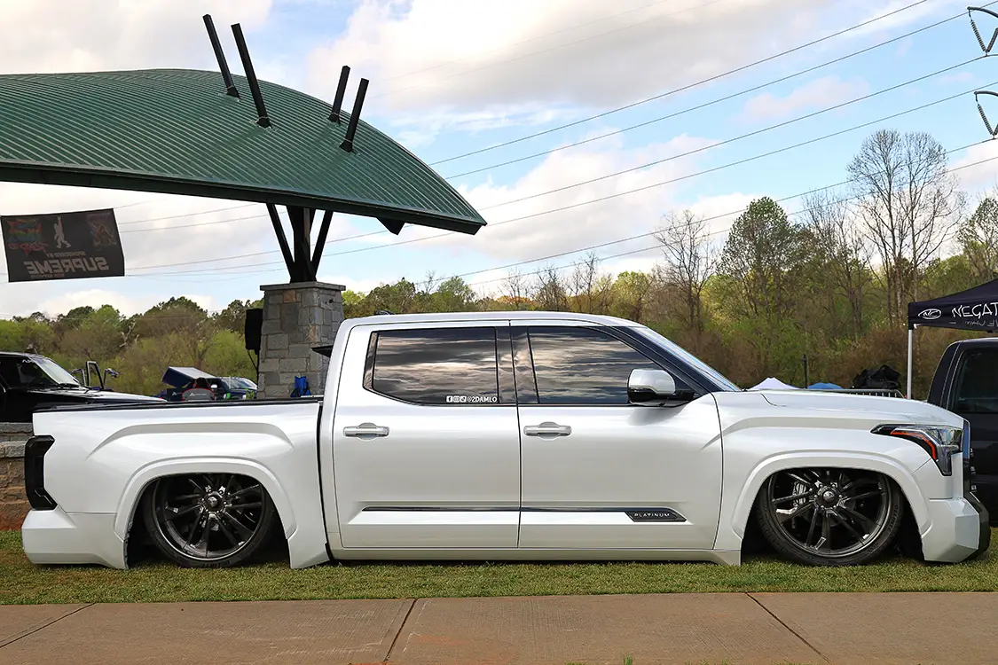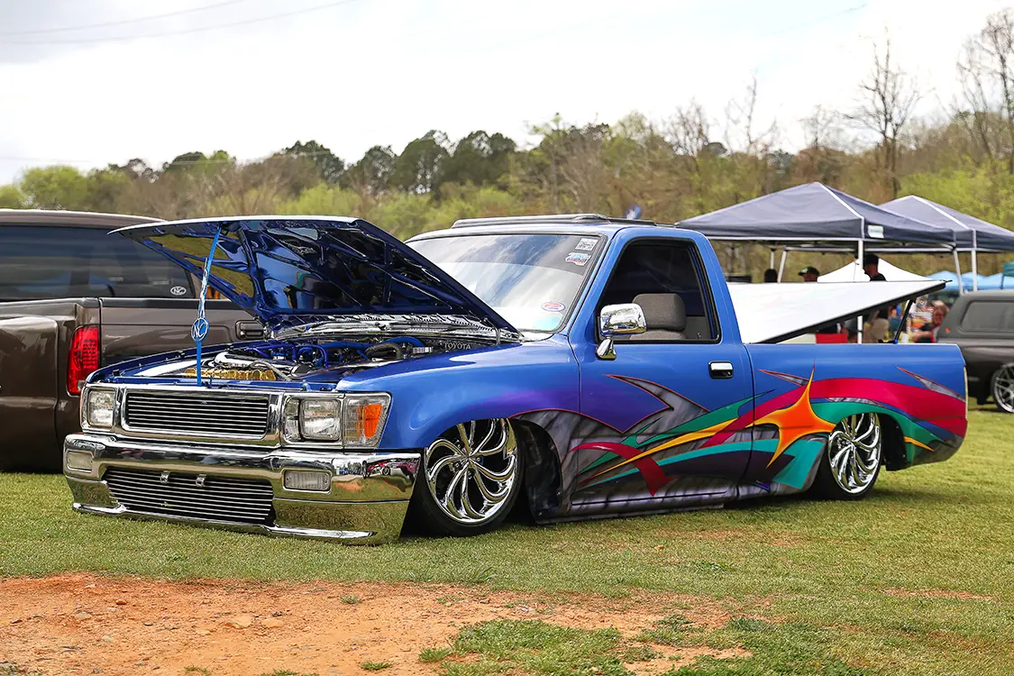 For those who don’t know, Southern Tradition is more than just a truck show; it’s a celebration of Southern car and truck culture, family, and the laid-back, good-times atmosphere that makes this scene so special. Folks rolled in from all over the Southeast, pulling in slammed mini-trucks, lifted full-size rigs, bagged classics, and even a few badass bikes. The showgrounds were packed all weekend long, with rows of jaw-dropping builds that had everyone stopping in their tracks to snap pics or swap stories.