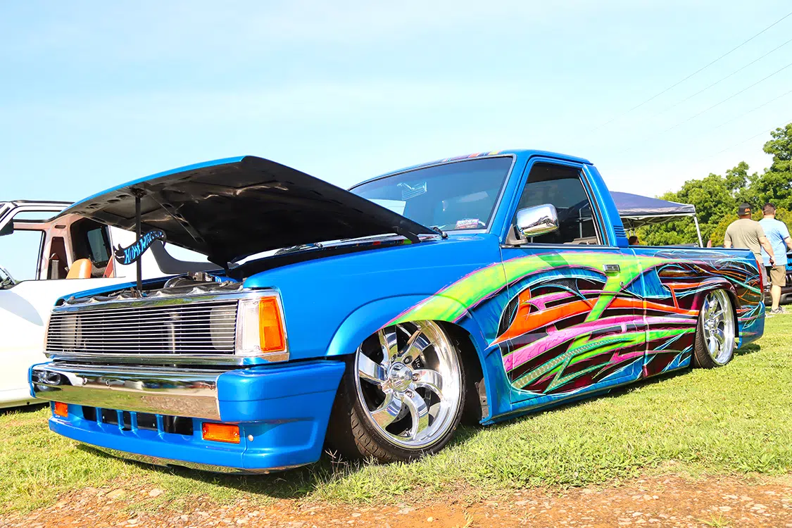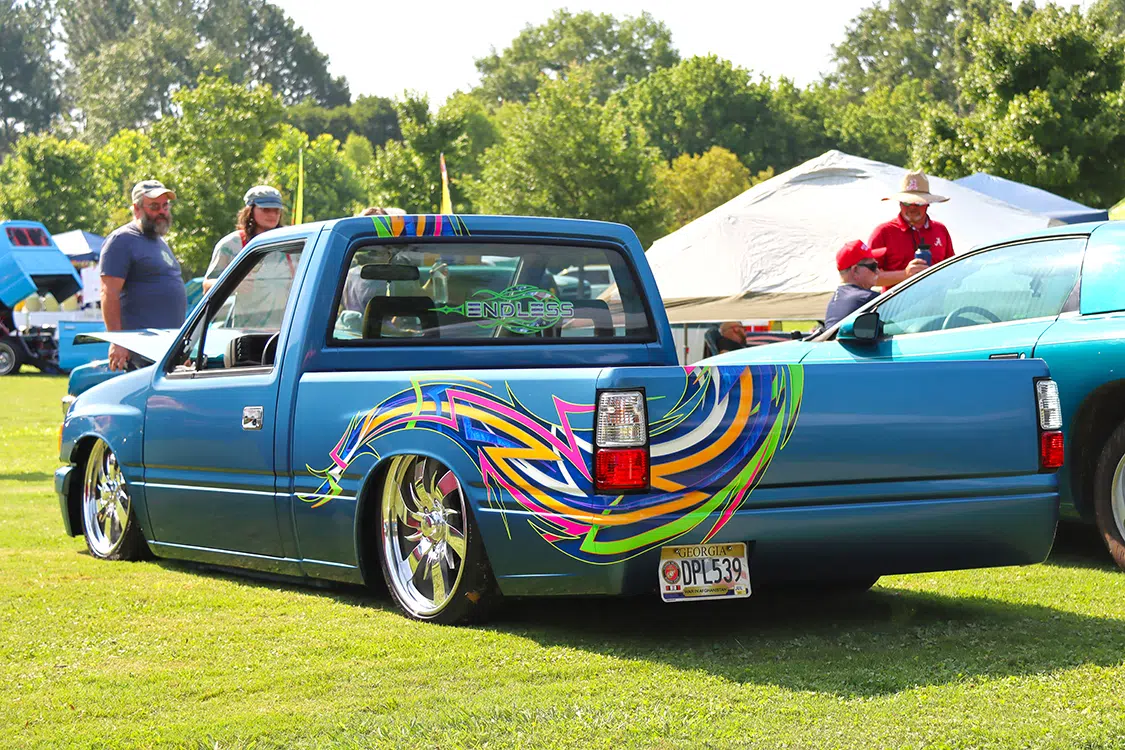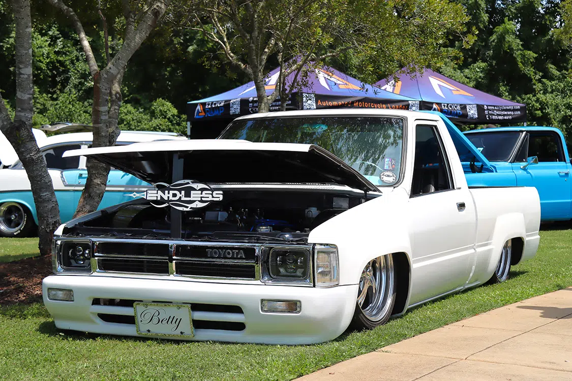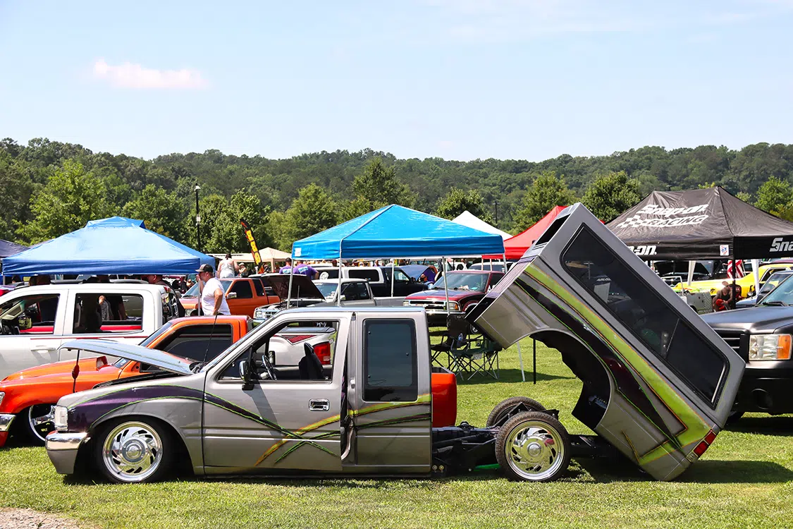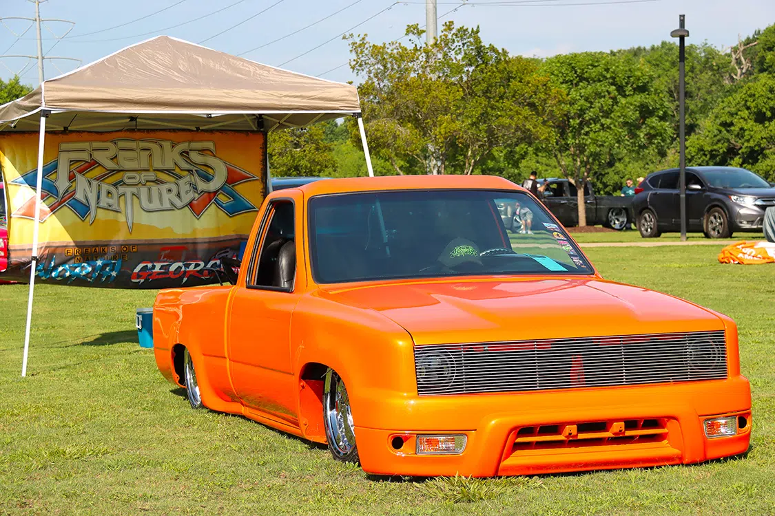 Laying out at the Etowah River Park was an impressive spread of custom rides and cool conversations, with HammerD Weekend Wear in the VIP spot slinging killer merchandise as you walked down the sidewalk. DJ Maze dropped the beats all weekend, providing the perfect soundtrack for showgoers to relax and soak in the laid-back atmosphere. The wide-open show field offered plenty of room for activities. Smelling BBQ and various food vendors left you no reason to leave the showgrounds. Stack that up with an epic variety of custom vehicles and various personalities, and the event really was one-of-a-kind.