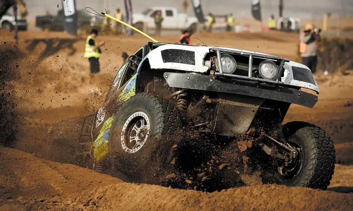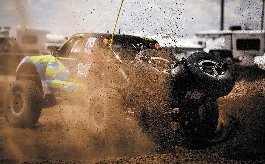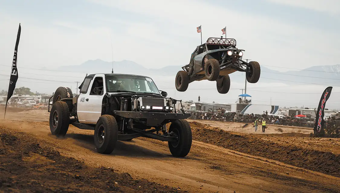 Coming into Saturday, our main day of the event, everyone was prepped and ready to take to the courses. After our mandatory safety meeting, all of our participants and drivers got to their positions and went for it. For our off-road desert course and thrash track, we had multiple classes of vehicles running throughout the day. These include Sketchy Dudes (no cage class), Baja Buggy Dorks (Baja bug and open wheel class), Brorunner (leaf spring class), and Wannabe TT (unlimited truck class). These classes took turns on the course throughout the day and thoroughly entertained our crowd of 3000+ people! At the other end of the venue, we had our drift course running all day with various entry comps and drift comps to keep the drivers motivated and running. In between all of the action was our vendor row, where you could find vendors from every aspect of the off-road market along with some apparel shops and other brands. Our food court was full of good eats and desserts, and we also had a DJ entertaining the crowd throughout the day.