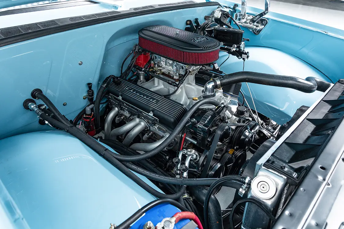 A fresh TCI Turbo 350 transmission backs it up, paired with a TCI torque converter set to a 3,500 stall. A B&M front-mounted trans cooler keeps temps in check. Power heads to a 3.08 geared, factory posi Ford 9-inch rear—solid and simple, just how we like it.
