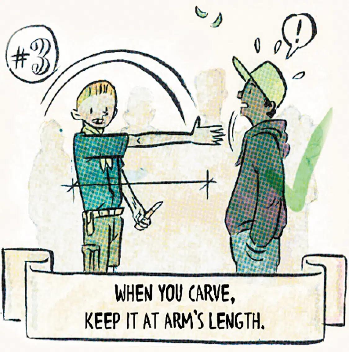 If you are going to carve something, ensure that no one else is within an arm’s length of you. This helps you to keep a safe space around you and prevents accidents for you and for those around you.