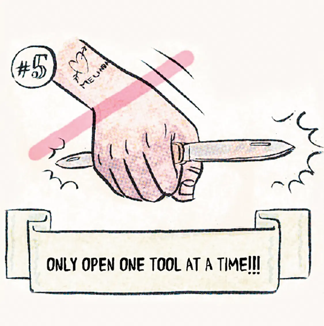By far the safest way to use your Swiss Army Knife is to use only one tool at a time. Although the many tools are undoubtedly one of the attractions of these pocketknives, opening more than one at a time risks injury, so be sure to close one tool before opening the next.