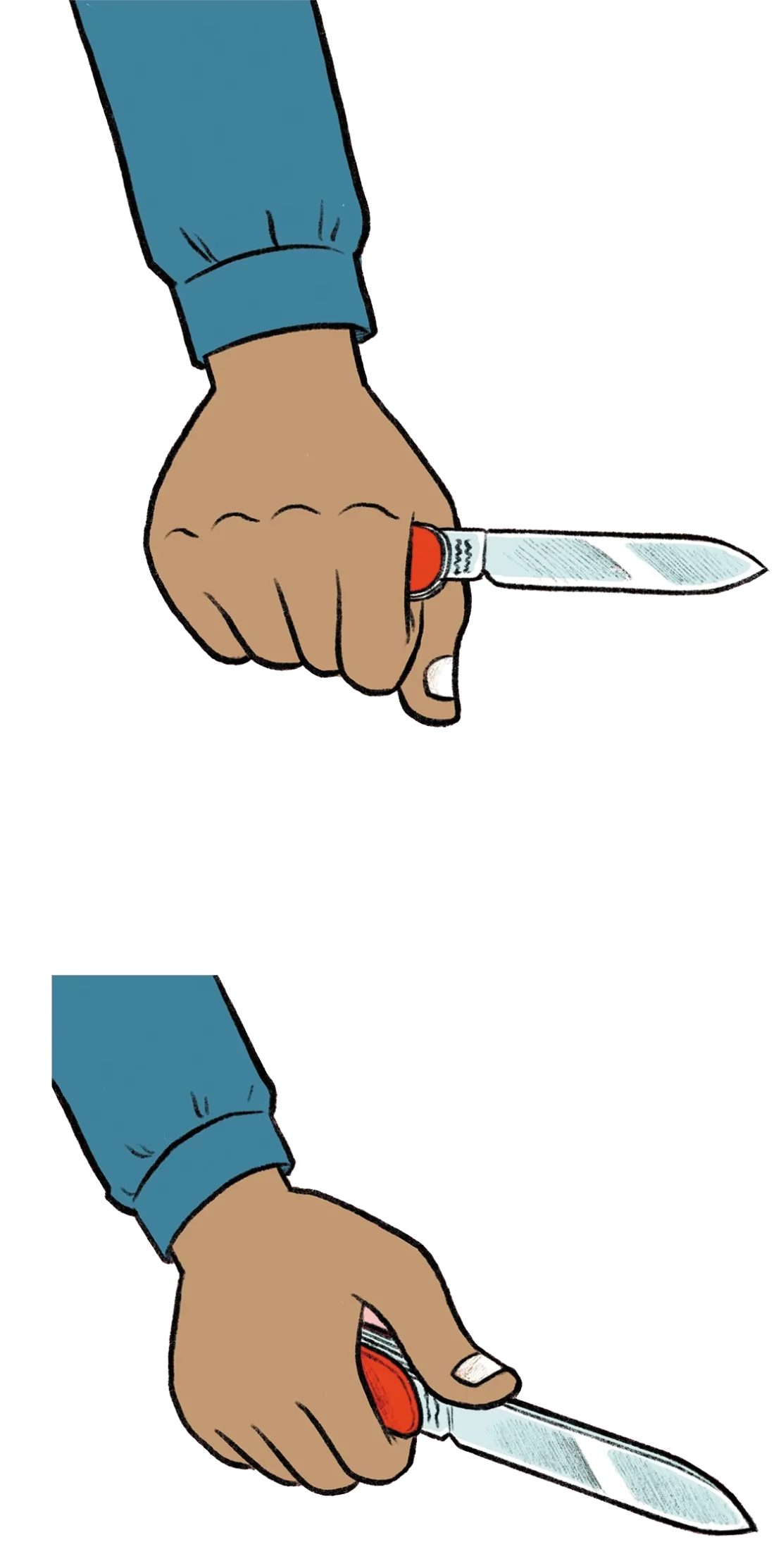 It is important that the knife is held close to the blade. The thumb can also be placed on the back of the knife. Attention: The blade must not fold.