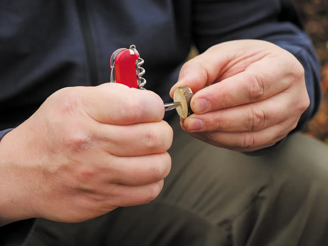 Once out and about in nature, it is of course high time to apply the knowledge you have learned and carve something great. For example, how about a spinning top, a fork, or even a water wheel?