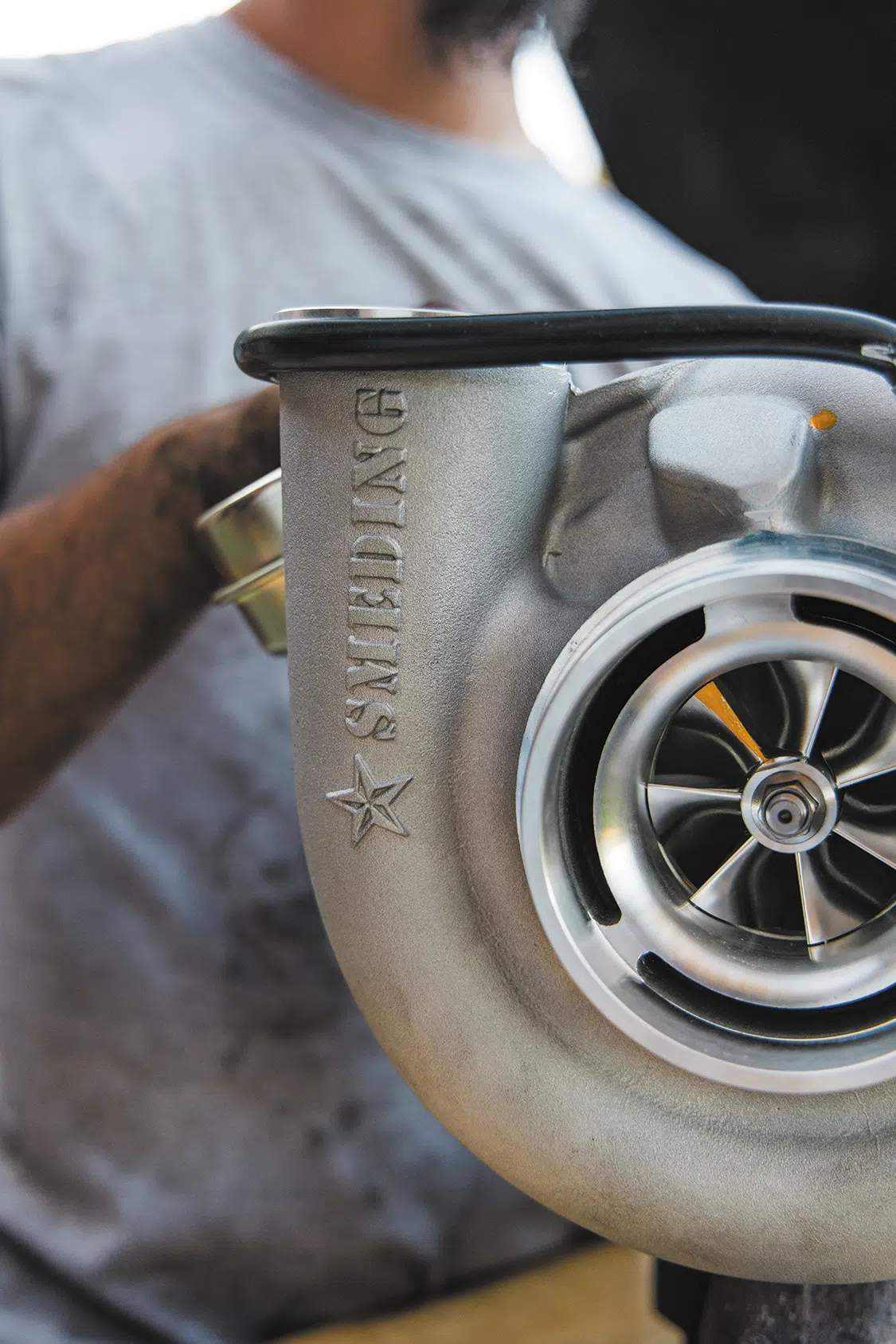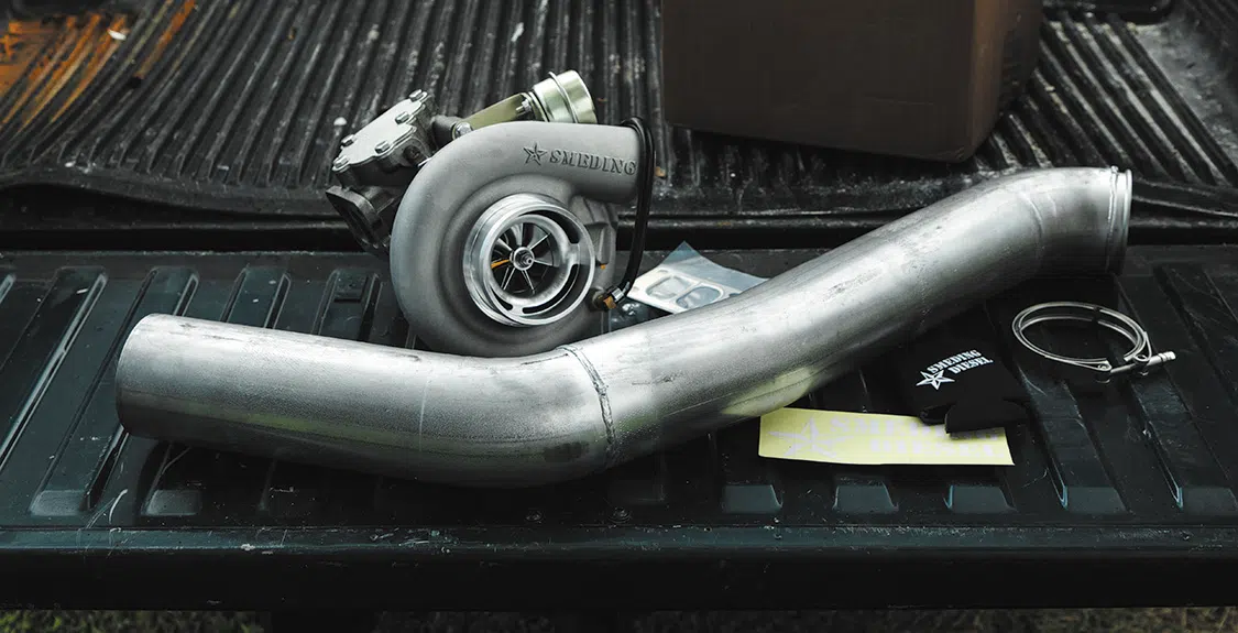 Our first “stage” of turbochargers on this build is this Smeding Diesel stock replacement S362/65/14.