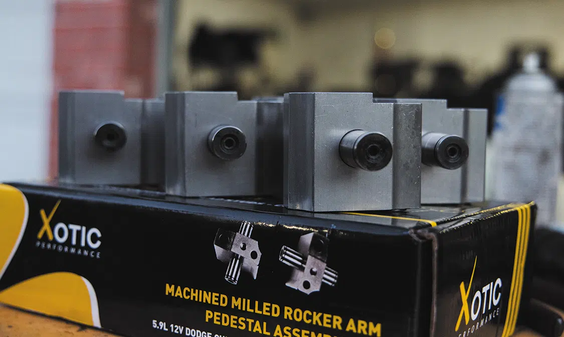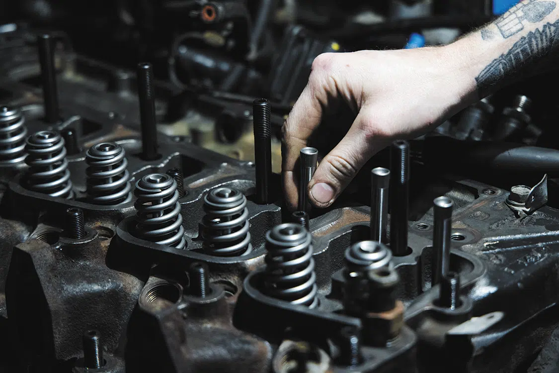 Once we got the head back from Express Engines (Deland, FL (386) 734-9302) we didn’t waste any time getting the top end back together so we were ready to film our DDP fueling product install. We used ARP 425 12MM head studs, XOTIC performance pre machined pedestals so we didn’t have to get the stock ones modified for the studs Diesel auto power 145# valve springs and diesel auto power heavy duty chromoly 7/16 pushrods so this engine can handle the higher RPM range we need to get this truck to safely and consistently put down power. Doesn’t it look pretty?!