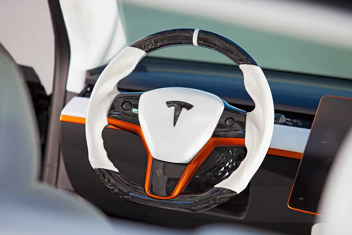 • Steering Wheel: Unleashed customs in white leather and forged carbon