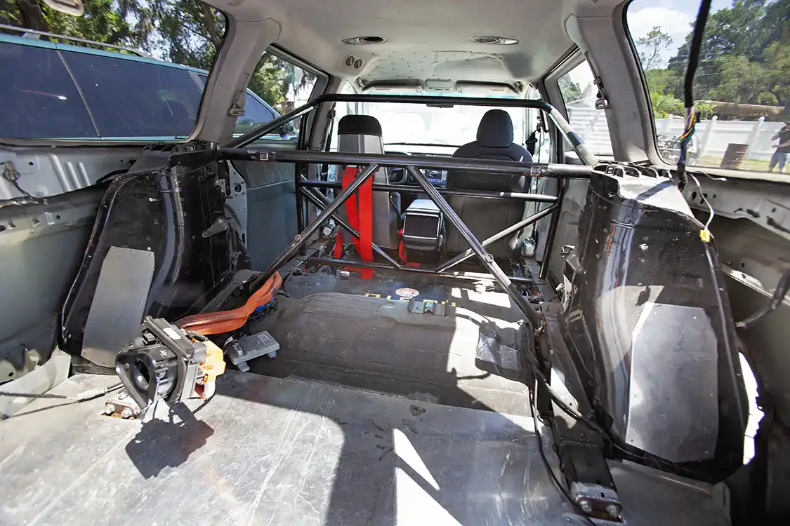 It all started with a wrecked Tesla Model S Plaid, a car that left the factory with a 1,020-horsepower tri-motor setup, a 0-60 time of two seconds, and more performance than most supercars. To most people, a damaged Plaid would be nothing more than an insurance write-off. To Kyle, it was the perfect donor for something utterly ridiculous. Enters the Plaidessey—a 2001 Honda Odyssey minivan mounted onto the Tesla Plaid’s drivetrain and chassis. At first glance, it looked like an aging family hauler, but under the hood—well, there was no hood—sat the full Tesla powertrain, complete with all-wheel drive, instant torque, and silent-but-deadly acceleration. Coupling the Odyssey body with the Tesla chassis was no small task. While their wheelbases were surprisingly close, Kyle and his team had to extensively modify the structure to make everything fit properly. The interior was retained from the Tesla, complete with the factory infotainment system and yoke steering wheel, giving the Plaidessey the bizarre combination of Tesla tech and 90’s minivan nostalgia.