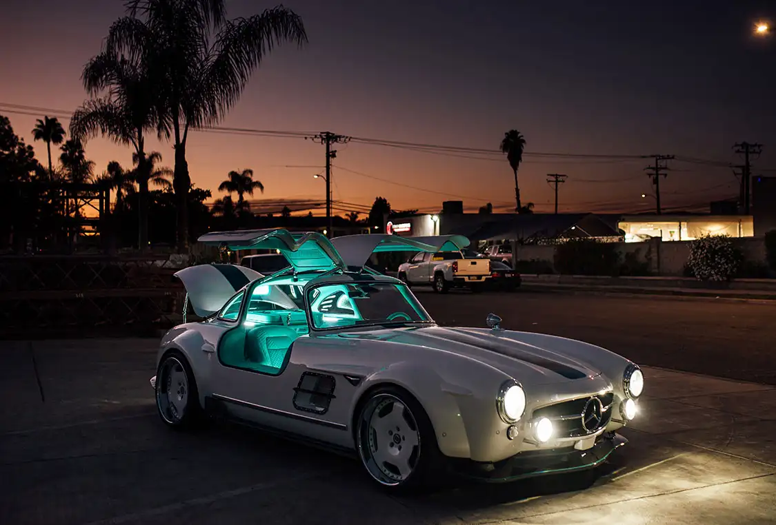 The brainchild of John S, an automotive artist and builder from Southern California, this project aimed to fuse the aesthetics of the Mercedes-Benz 300 SL with the technological prowess of Tesla. The vision was not just to create a car that looked good but to engineer a vehicle that performed exceptionally well, leveraging the full suite of Tesla’s electric capabilities, including its full self driving function. This endeavor was brought to life by the talented team at S Klub LA along with Tesla repair guru Bogdan Golovatiuk from TSK, in Cypress, California . (Los Angeles) playing a pivotal role in its execution.